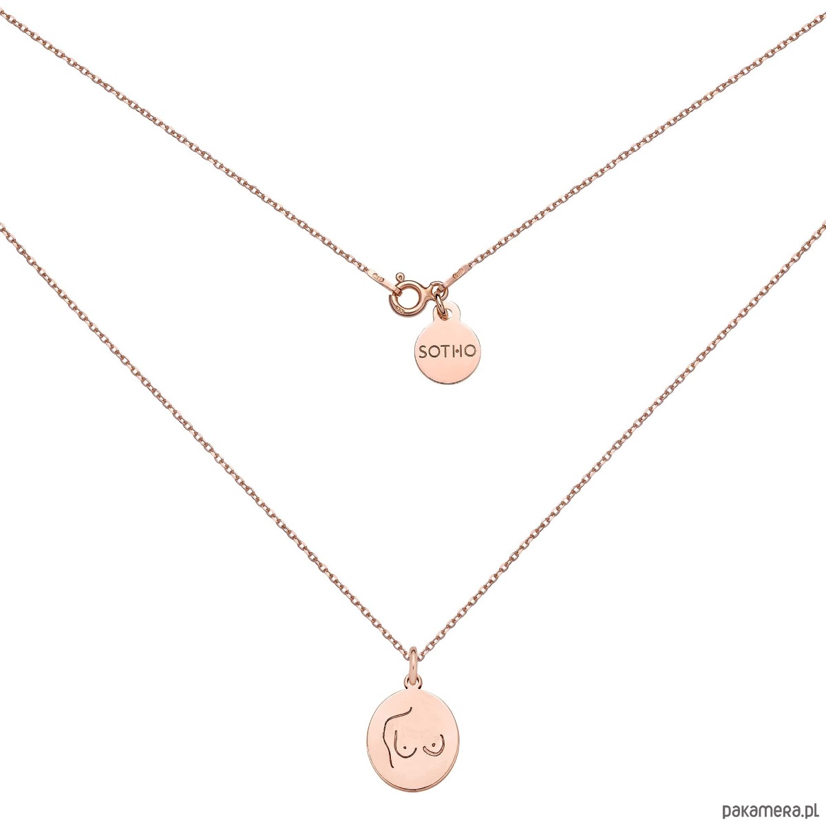 Złoty naszyjnik z medalionem Body N°4 i zawieszką z logo marki. Całość wykonana ze srebra 925 powlekanego 18 karatowym różowym złotem.