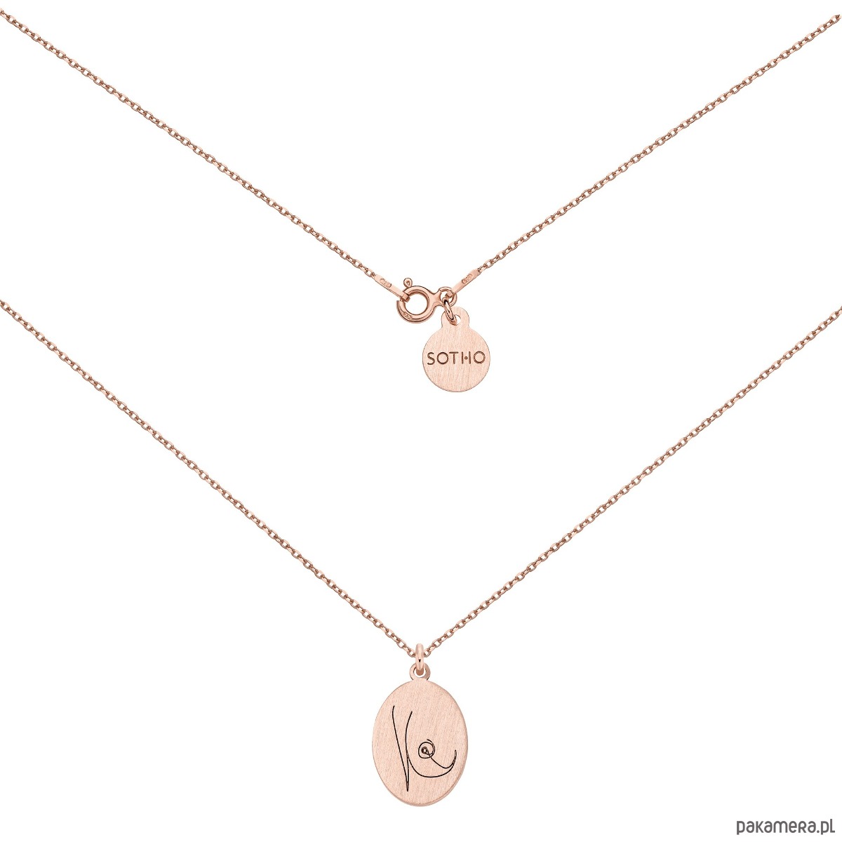 Złoty naszyjnik z matowym medalionem Body N°6 i zawieszką z logo marki. Całość wykonana ze srebra 925 powlekanego 18 karatowym różowym złotem.