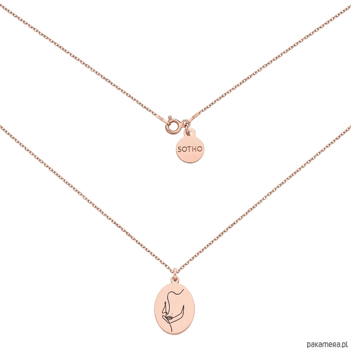 Złoty matowy medalion Face N°8 zawieszką z logo marki. Całość wykonana ze srebra 925 powlekanego 18 karatowym różowym złotem.