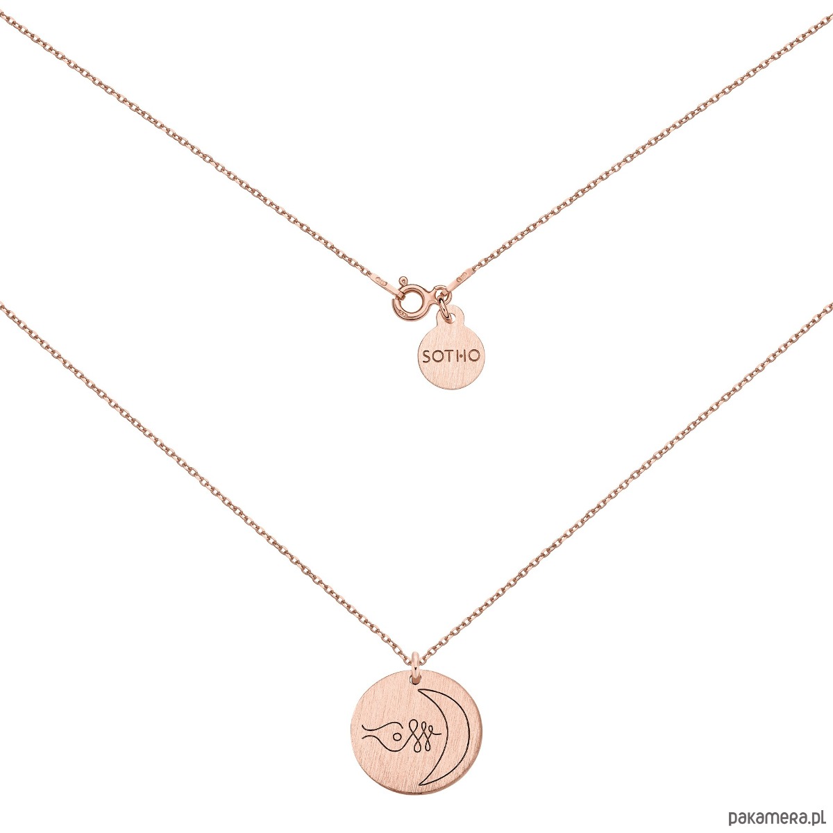 Złoty matowy medalion z symbolem serca i zawieszką z logo marki. Całość wykonana ze srebra 925 powlekanego 18 karatowym różowym złotem.