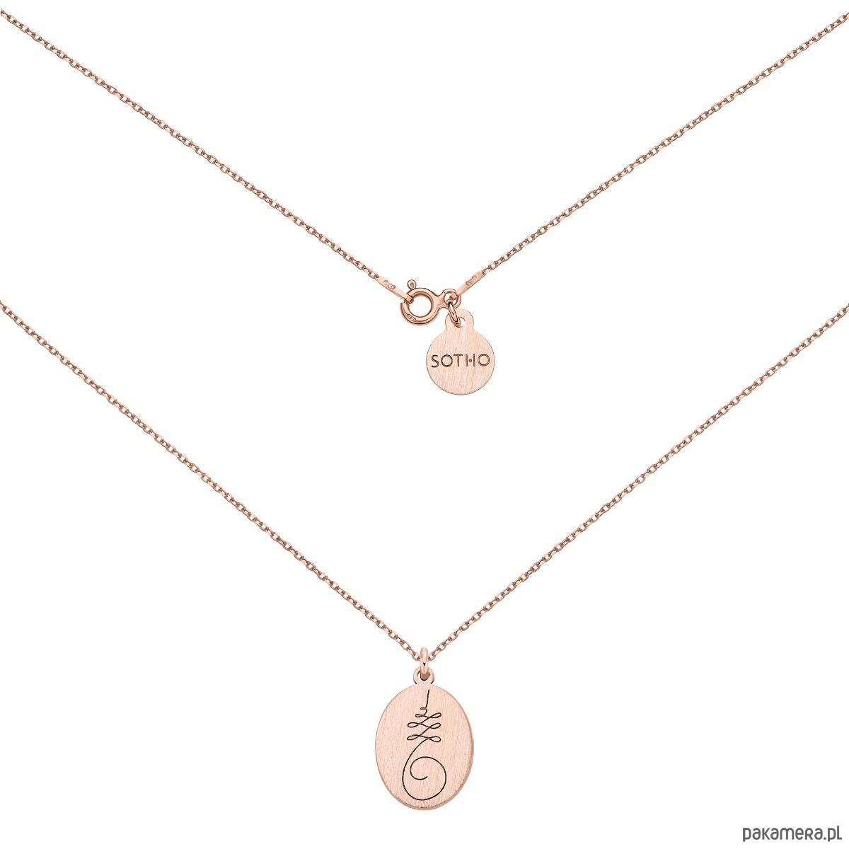 Złoty matowy medalion z symbolem Unalome i z zawieszką z logo marki. Całość wykonana ze srebra 925 powlekanego 18 karatowym różowym złotem.