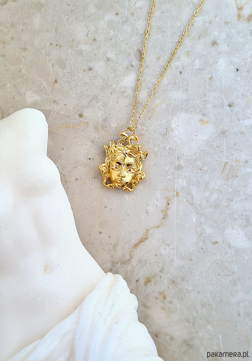 Naszyjnik z zawieszką w kształcie głowy Meduzy / Gorgony wykonany ze srebra próby 925 pokrytego 24kt złotem.