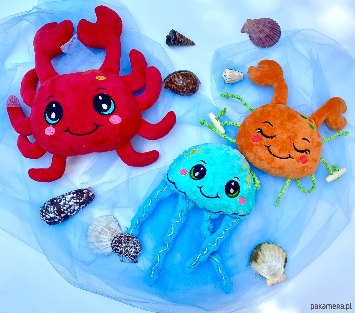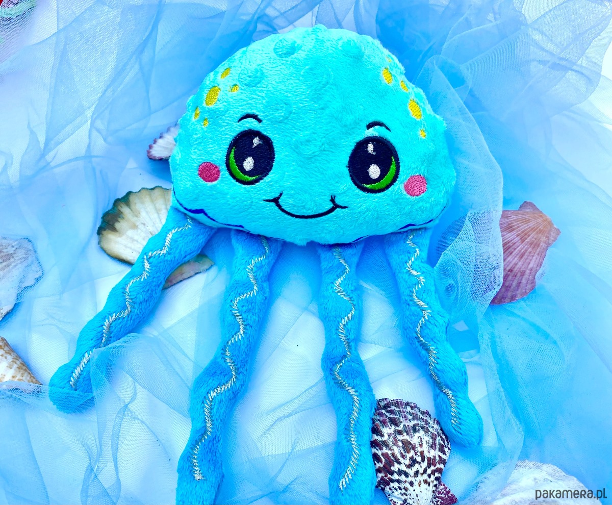 Wesoła meduzka to przytulanka z sensorycznymi odnóżmi. Możliwość zmiany koloru. Twarz haftowana.