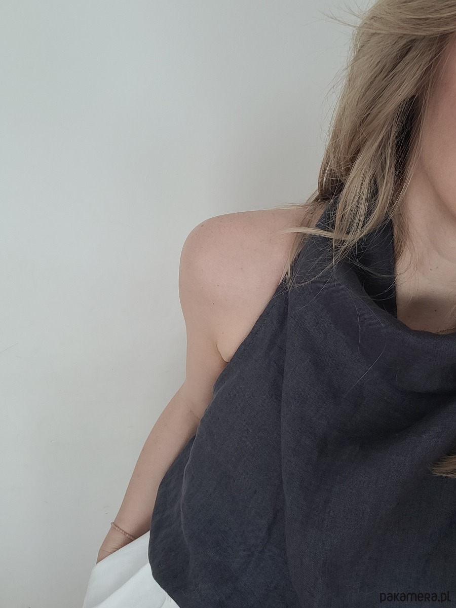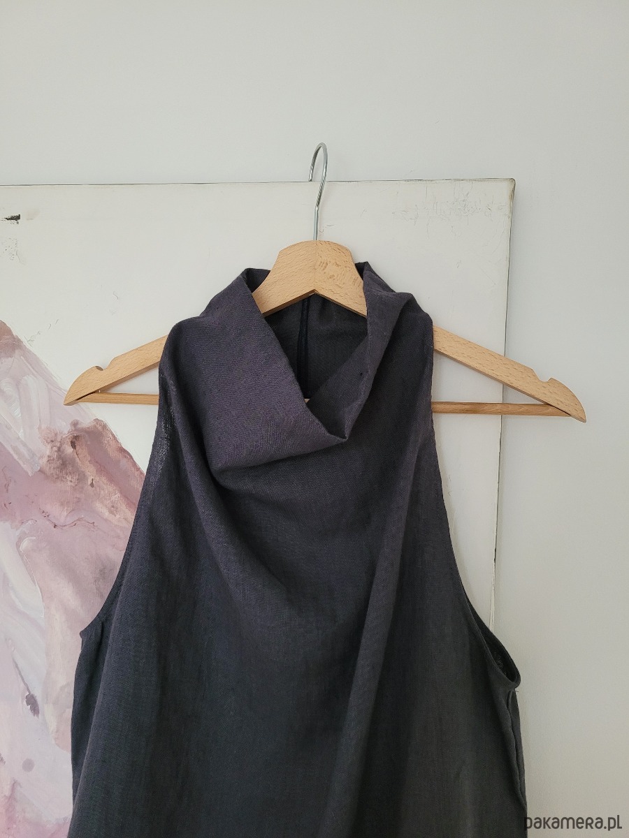 Meg Linen Top to lniany top w kolorze grafitowym o prostej, minimalistycznej formie. Ma dekolt typu halter, pięknie podkreśla ramiona, jest luźny i bardzo wygodny.