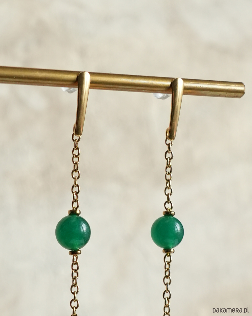 MEGA długie i bardzo efektowne kolczyki z JADEITEM w kolorze butelkowej zieleni i złotym HEMATYTEM. Łańcuszek i ozdobne, podłużne sztyfty to STAL SZLACHETNA w kolorze złotym. Idealne na imprezę i na co dzień do wiosennych i letnich stylizacji.