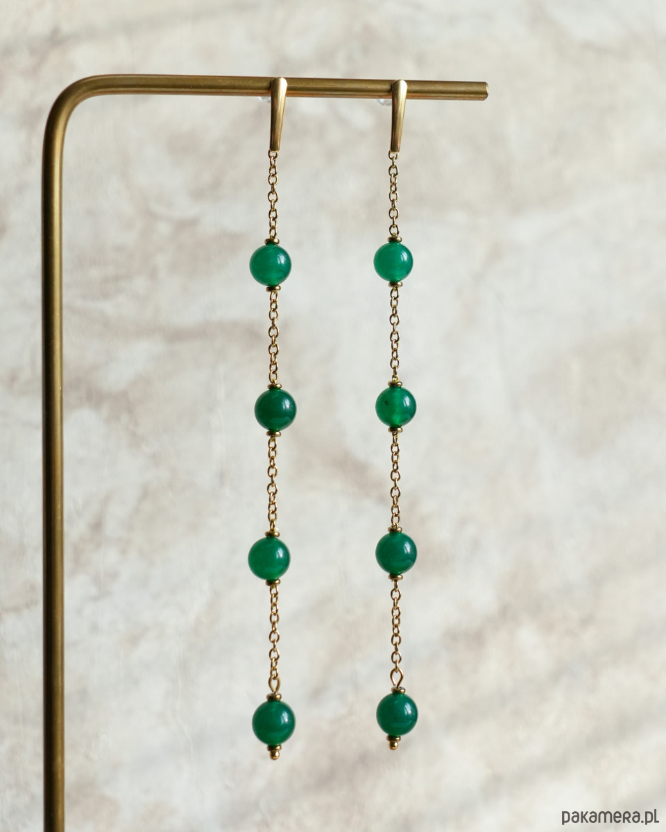 MEGA długie kolczyki z jadeitem butelkowa zieleń