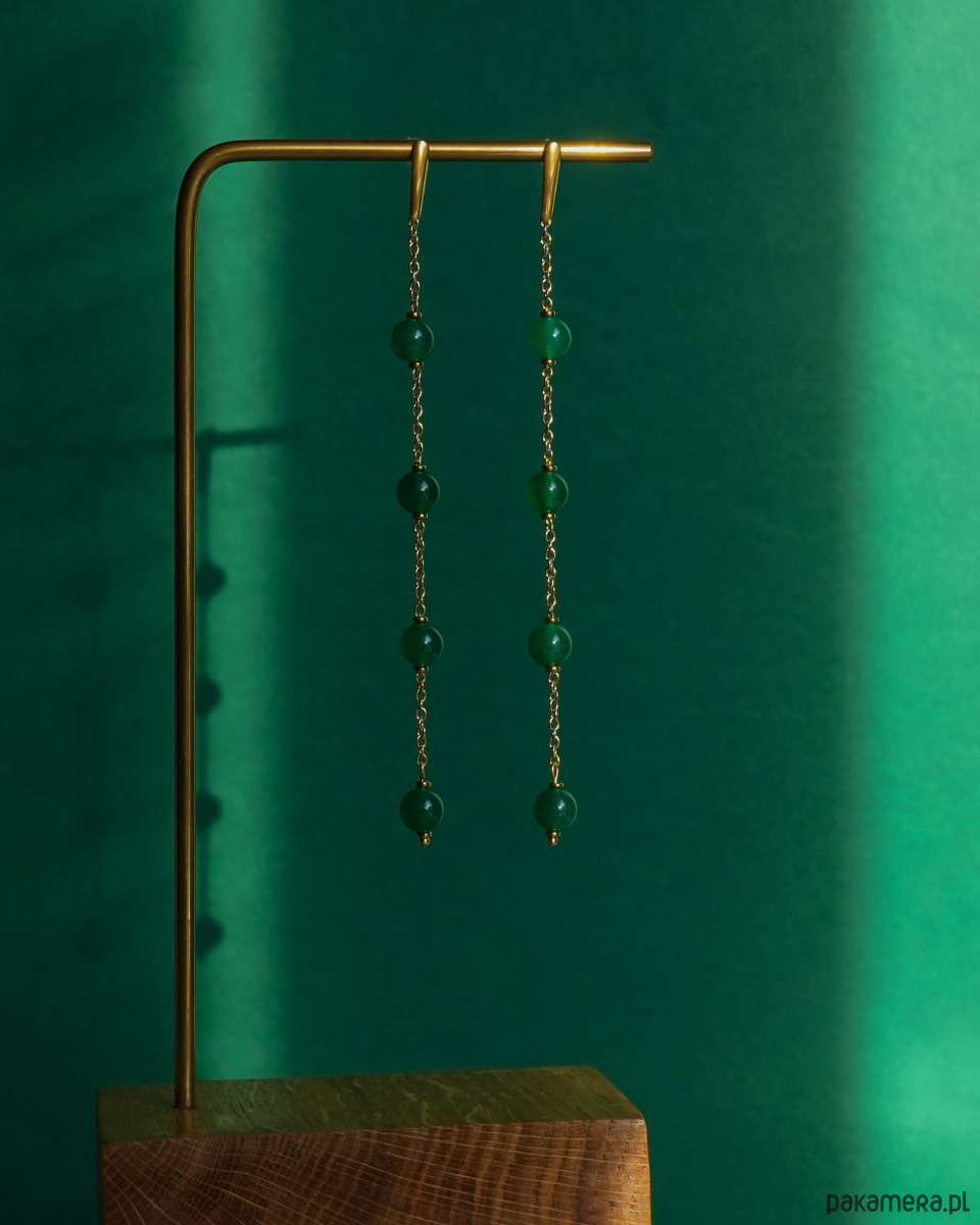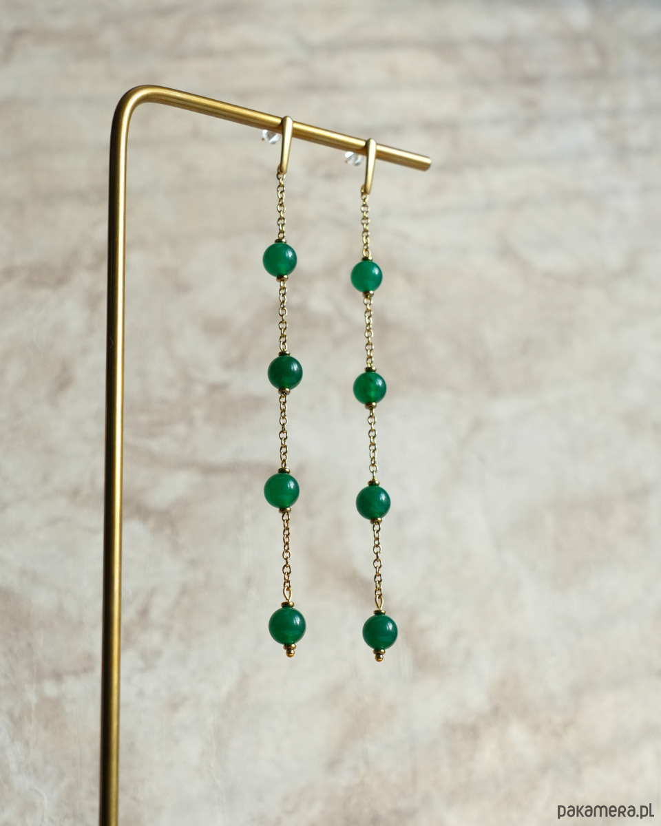 MEGA długie kolczyki z jadeitem butelkowa zieleń
