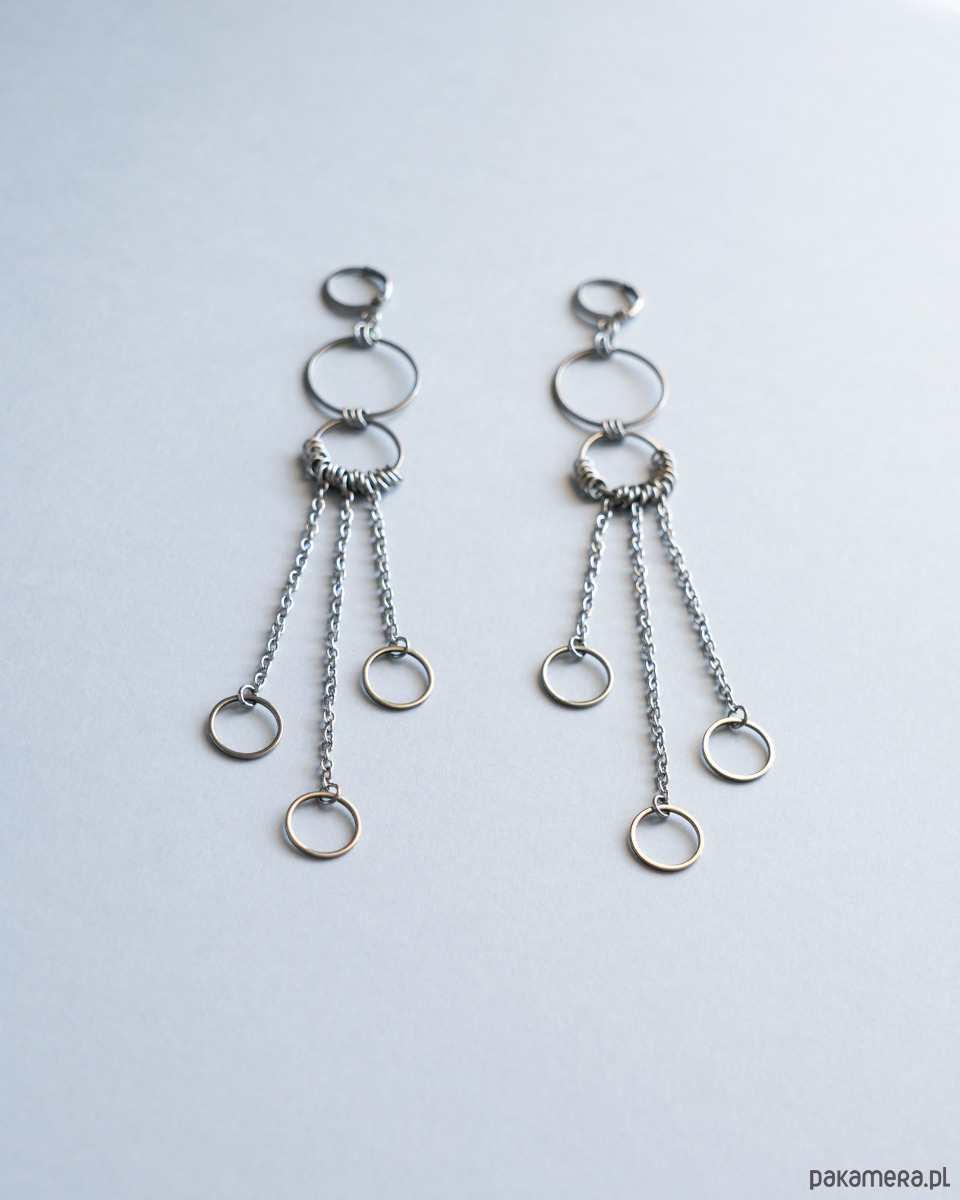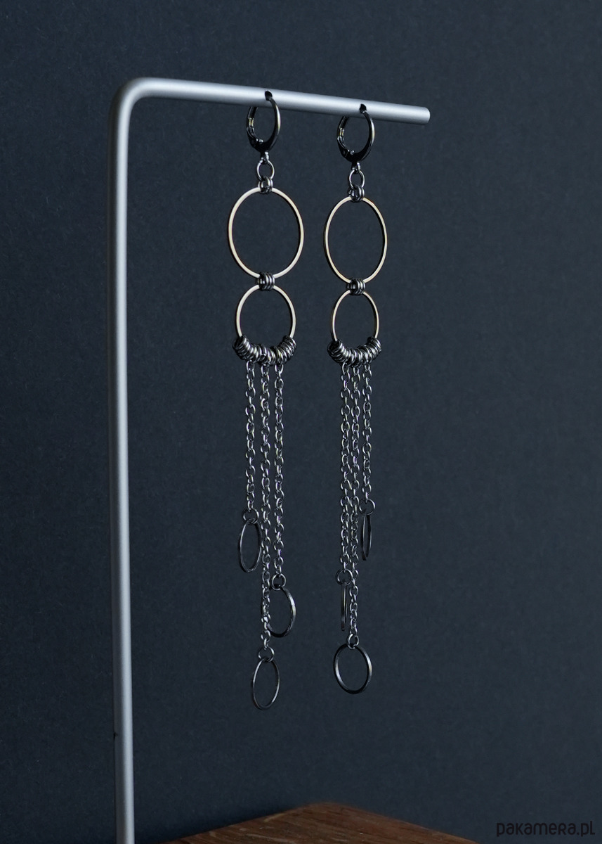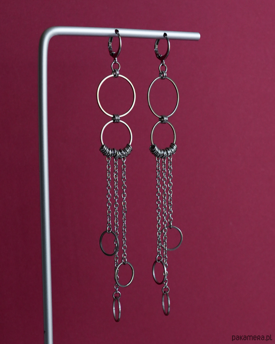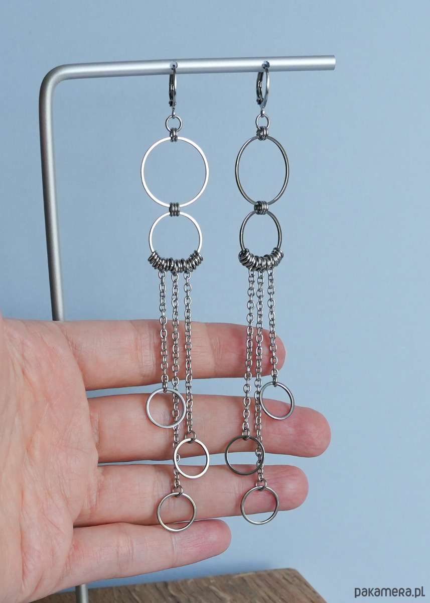 MEGA długie i bardzo efektowne kolczyki w całości wykonane ze stali szlachetnej. Extra dodatek na imprezę, ale też do noszenia na co dzień. Dla kobiet, które lubią wyrazistą, i rzucającą się w oczy biżuterię.