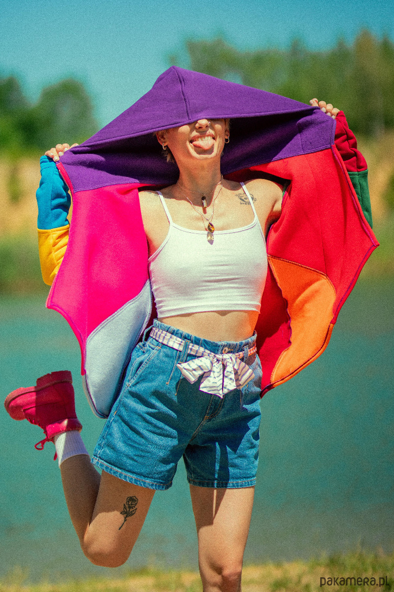 Multikolorowa bluza damska , asymetryczna bluza na zamek .