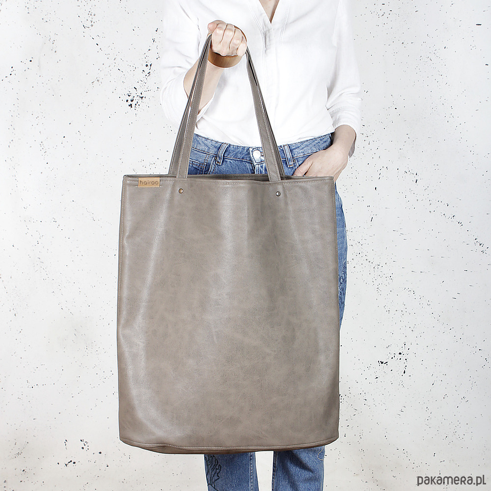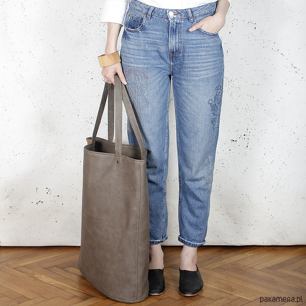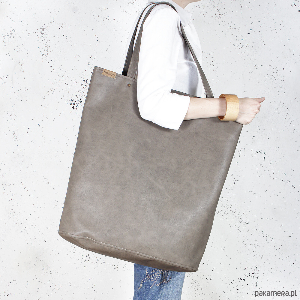 Mega shopper torba brązowa na zamek