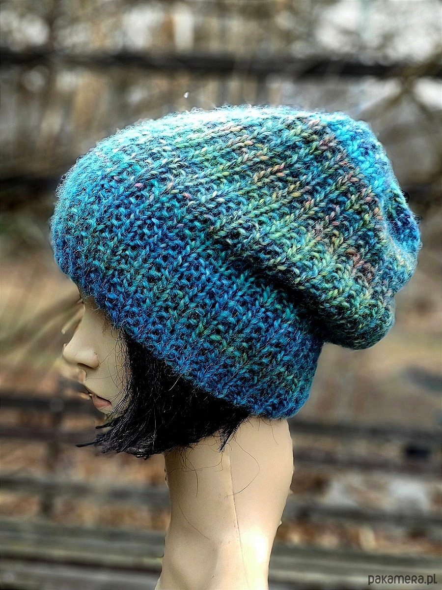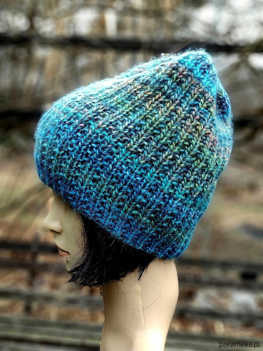Ciepła, lekka, miękka i cudowna w dotyku czapka wykonana ręcznie na drutach. Połączyłam cieniutką nitkę 70% kid moher/30% jedwab z miękką włoską włóczką 85% wełna merino, 15% akryl. Czapka jest bezszwowa i dwustronna. Bardzo twarzowa- sama się układa :)