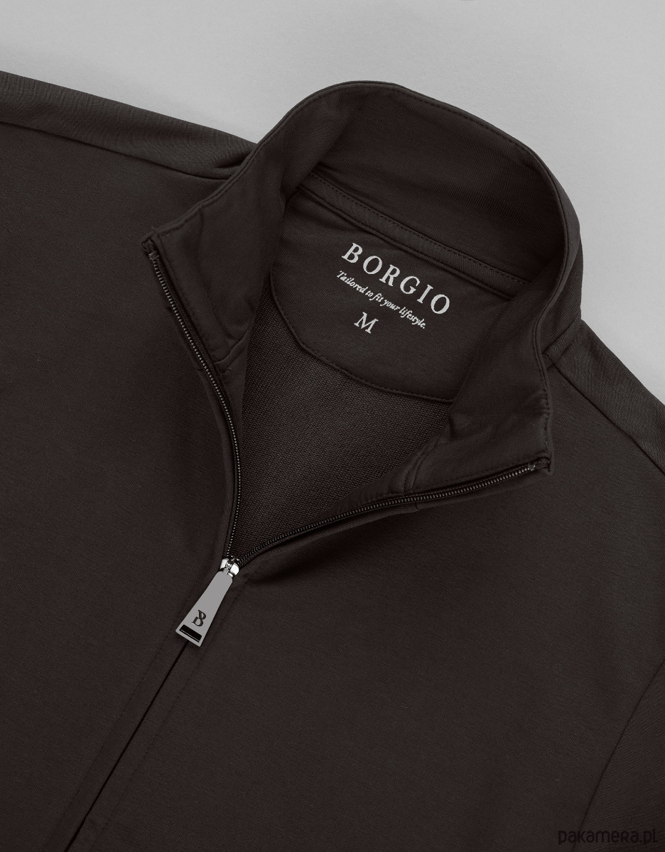 5901122530992bluza buturo grafit długi rękawButuro to rozpinana na całej długości bluza w kolorze grafitowym. Wykonana z najwyższej jakości dzianiny z modalu, który zapewnia niezwykle przyjemny chwyt, z dodatkiem elastanu, który nadaje bluzie wyjątkowej elastyczności. Posiada dwie kieszenie zewnętrzne, zapięcie na zamek z logo oraz subtelną wszywkę z logo Borgio na lewym szwie. Występuje w dwóch wariantach kolorystycznych. Idealnie sprawdzi się w zestawie ze spodniami Orvieto.