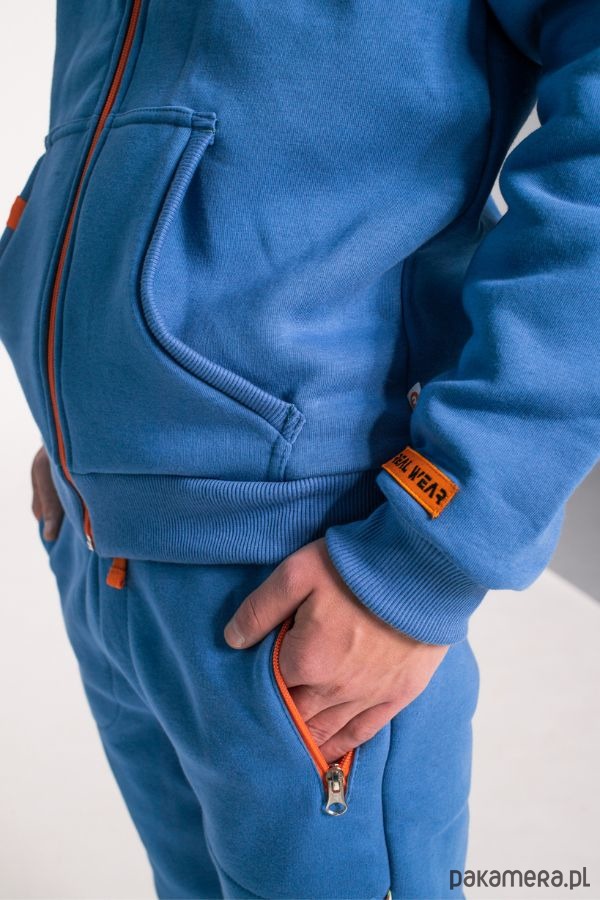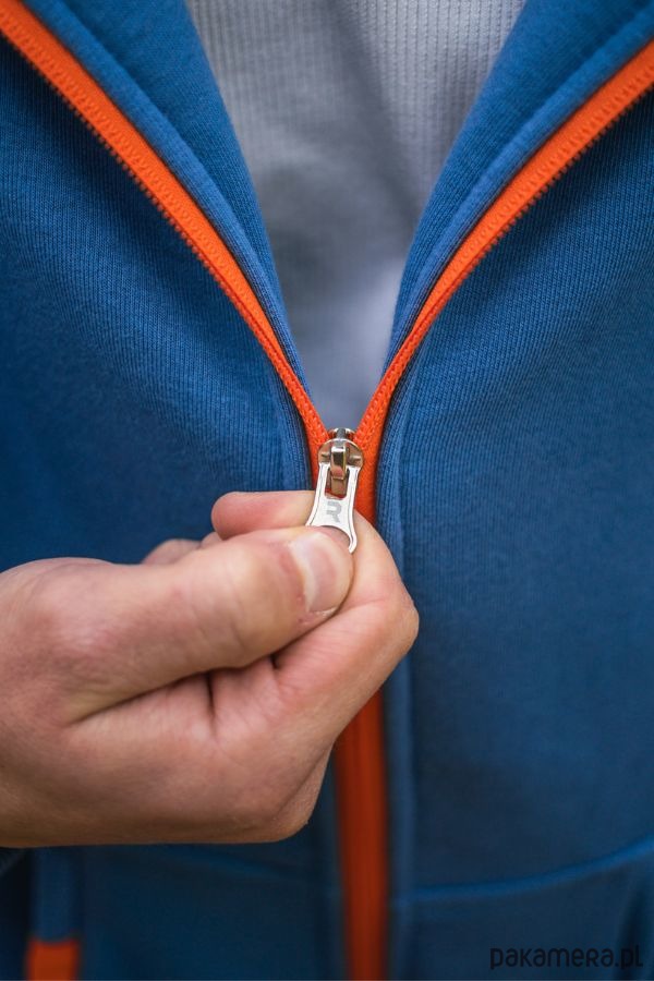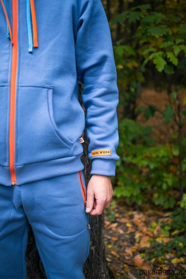 Zaprojektowana przez Marcelinę Hulę męska bluza rozpinana REALWEAR, to streetwear w najczystszej postaci. Fason bluzy został tak zaprojektowany, żeby zapewnić maksimum wygody nawet najbardziej wymagającej osobie. Bluza jest rozpinana po całości pomarańczowym zamkiem i to nie jedyny akcent w tym kolorze! Kaptur uszyty jest z podwójnego materiału, żeby lepiej chronić przed chłodem i wiatrem, a jego wewnętrzna część jest właśnie w kolorze pomarańczowym.