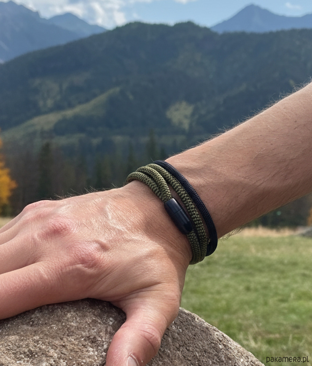 Nowość, modna bransoleta męska zrobiona z mocnej i wytrzymałej liny typu Paracord. Bransoleta jest w stylu minimalistycznym. Wyjątkowa i jedyna w swoim rodzaju, w stylu beach i surferskim.