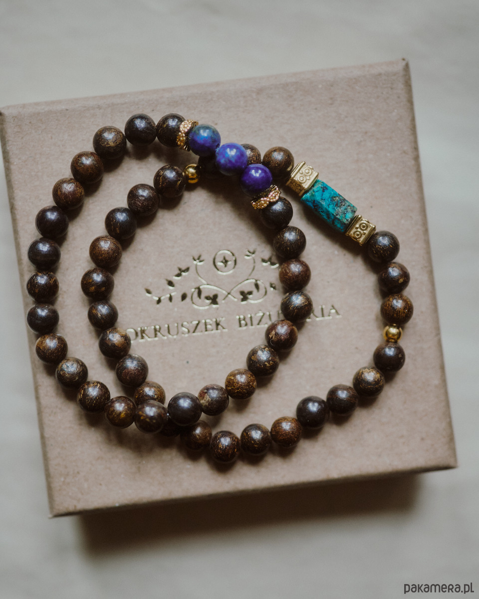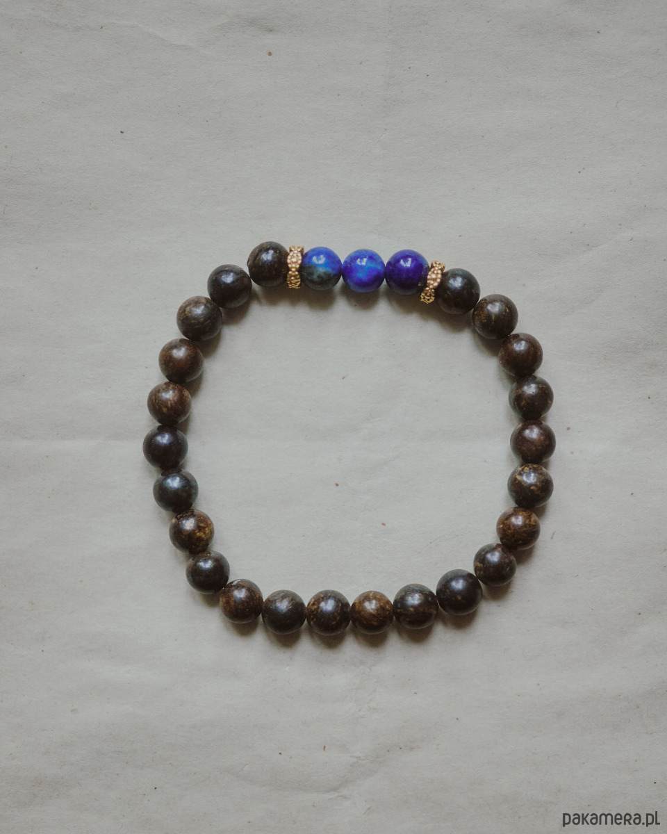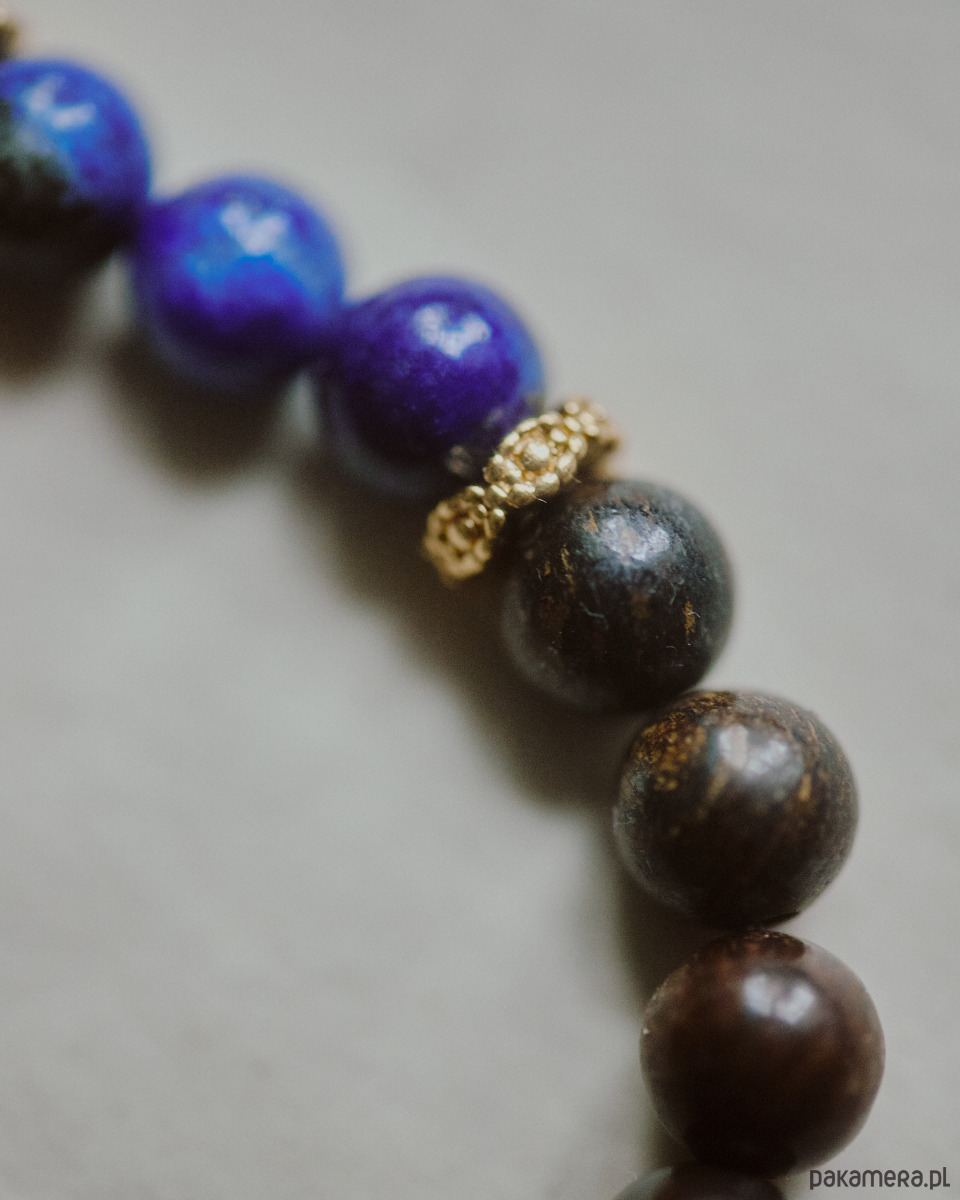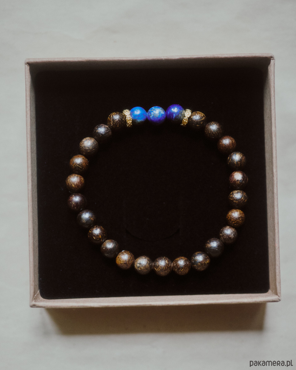 Męska bransoletka, bronzyt z lapis lazuli