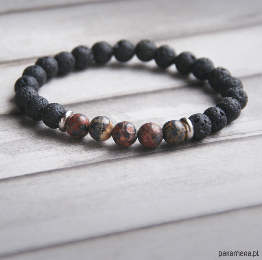 Męska bransoletka :: jaspis leopardzi & lawa
