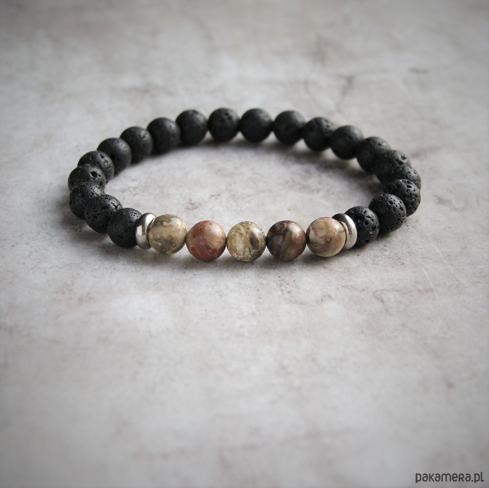 Męska bransoletka : jaspis oceaniczny & lawa