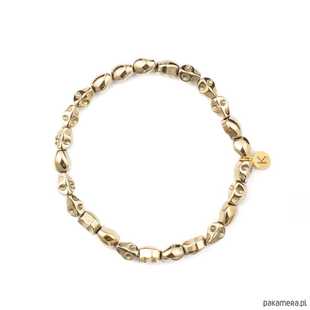 Wyjątkowa bransoletka stworzona z naturalnego Hematytu w złotym wykończeniu, którego kamienie zostały uformowane w kształt czaszki. To unikalne połączenie siły i elegancji, idealne dla osób ceniących odważne, charakterne dodatki.Znaczenie kamienia:Hematyt to kamień wojowników. Silnie oczyszcza krew. Budzi radość do życia, dodaje odwagi i wiary we własne umiejętności.