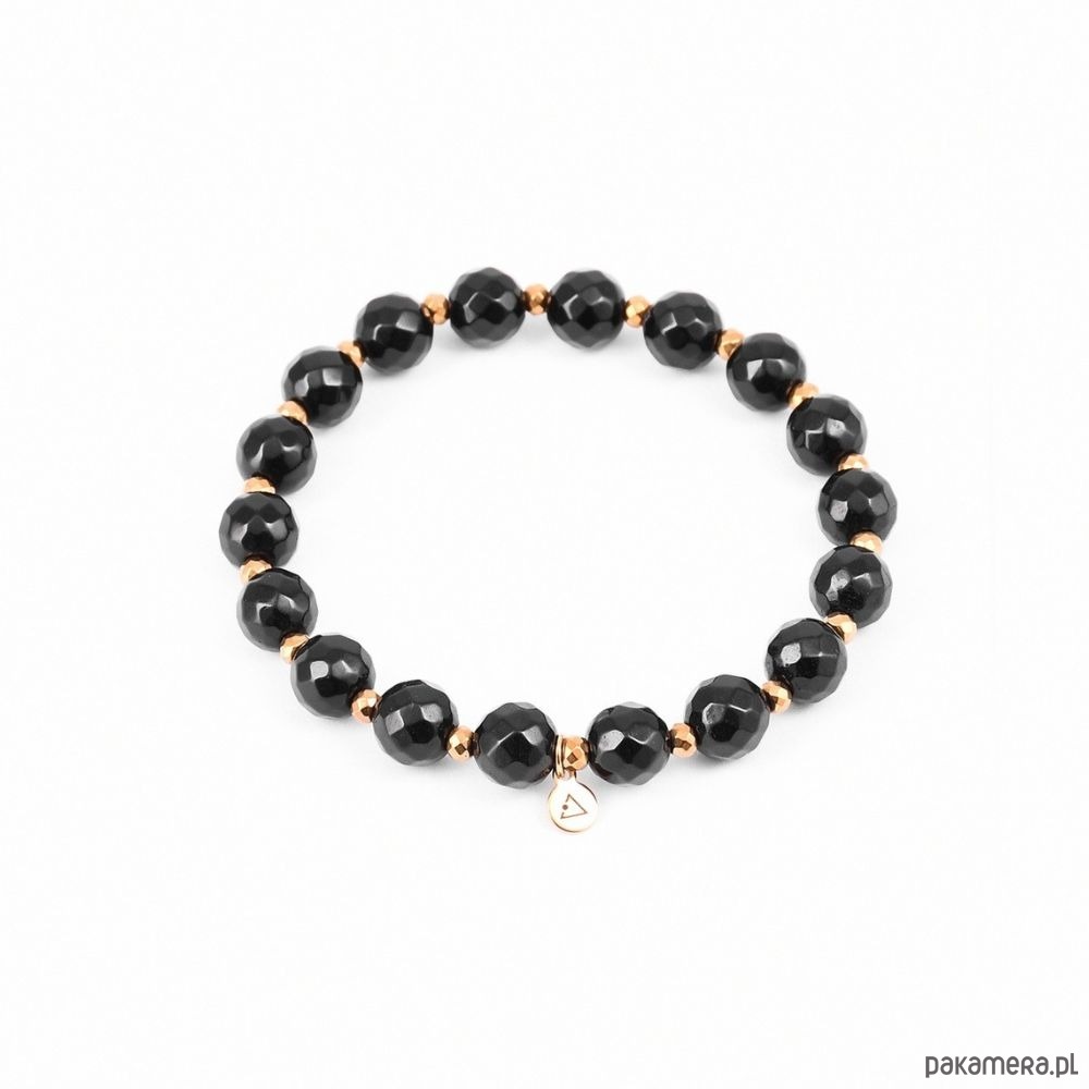 Bransoletka została nawleczona na wytrzymałą, elastyczną żyłkę, dzięki czemu dopasowuje się do nadgarstka i jest wygodna w noszeniu. Minimalistyczny design w czerni i złocie sprawia, że pasuje zarówno do codziennych stylizacji, jak i do eleganckiego stroju.