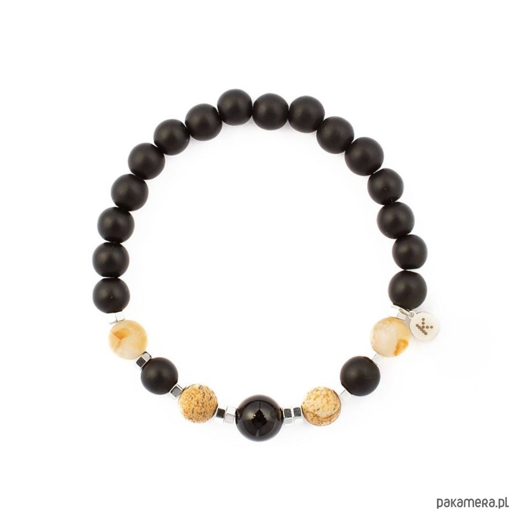 Elegancka, męska bransoletka wykonana z naturalnych kamieni, które wspierają równowagę, spokój i przyciąganie dobrych zmian. Zaprojektowana z myślą o mężczyznach, którzy cenią jakość, znaczenie i dyskretną symbolikę.Znaczenie kamieni:Cytryn to kamień bogactwa. Sprzyja utrzymaniu stabilności w sferze materialnej oraz satysfakcji z życia zawodowego. Przyciąga wiele dobrych okazji i pomocnych ludzi.Jaspis to kamień zdrowia. Poprawia atmosferę w pracy i w rodzinie. W związkach wpływa na spokój, zaufanie i harmonię.Turmalin czarny to kamień ochrony. Jest wyjątkowym kamieniem, który zapewnia ochronę przed tzw. złym okiem, czyli zazdrością, szkodliwymi intencjami oraz innymi rodzajami negatywnych wpływów, takimi jak obawy, strach i złość.Onyks to kamień sukcesu.Jego energia wzmacnia wytrzymałość i odporność przy wykonywaniu trudnych, złożonych zadań.Hematyt to kamień wojowników. Silnie oczyszcza krew. Budzi radość do życia, dodaje odwagi i wiary.