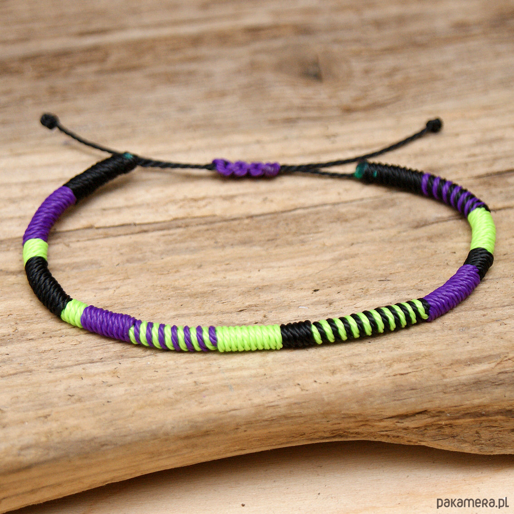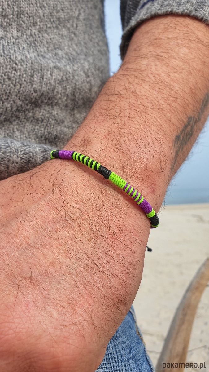 Męska bransoletka - plecionka SNAKE 4-5 mm -fiolet z neonowym zielonym