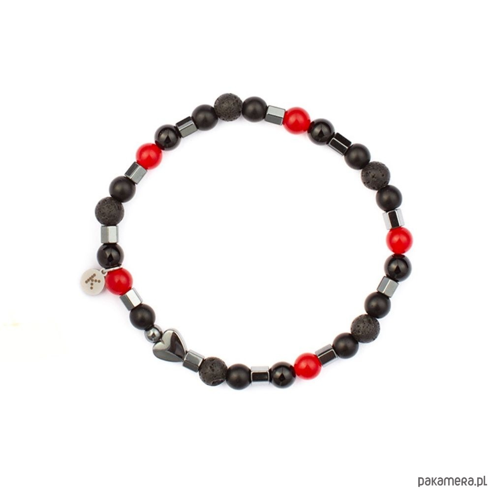 Wyjątkowa bransoletka, która łączy kontrastowe kolory i energie czterech naturalnych kamieni. Głęboka czerń Onyksu i porowatej Lawy Wulkanicznej została przełamana intensywną czerwienią Jadeitu oraz subtelnym połyskiem Hematytu. Efekt to biżuteria pełna charakteru, która wyróżnia się odważnym, a jednocześnie eleganckim stylem.Znaczenie kamieni:Jadeit to kamień szczęścia. Wspiera spokój, mądrość, równowagę oraz pomaga w podejmowaniu decyzji. Wzmacnia samorealizację i wytrwałość w dążeniu do celu.Onyks to kamień sukcesu. Jego energia wzmacnia wytrzymałość i odporność przy wykonywaniu trudnych, złożonych zadań.Lawa Wulkaniczna to kamień oczyszczenia. Wypala nagromadzone w nas negatywne emocje i przekształca je w mobilizującą do działania siłę.Hematyt kamień wojowników. Silnie oczyszcza krew. Budzi radość do życia, dodaje odwagi i wiary we własne umiejętności.Bransoletka została nawleczona na mocną żyłkę, dzięki czemu doskonale dopasowuje się do nadgarstka. Jej wyrazisty kontrast barw sprawia, że pasuje zarówno do codziennych stylizacji, jak i jako mocny akcent w bardziej eleganckim wydaniu.Przy wyborze rozmiaru bransoletki kieruj się obwodem nadgarstka mierzonym tak, aby miarka ciasno przylegała do jego najszczuplejszego miejsca.Każda bransoletka różni się nieco od siebie, ponieważ nie ma dwóch takich samych kamieni. Dla klienta wybieramy kamienie z wielką starannością, zawsze intuicyjnie.Wymiary:Kamienie: Jadeit/Onyks/Hematyt/Lawa WulkanicznaWielkość kamieni: 6 mm/6mm/ 5mm/6mm