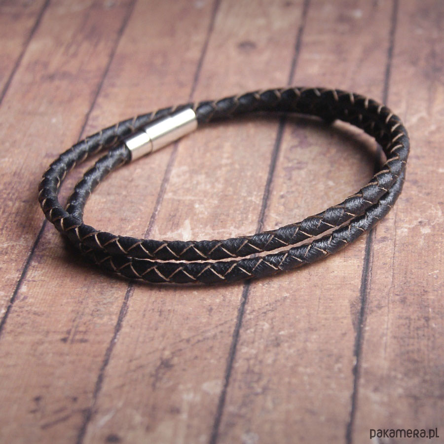 TUTAJ: prosta, lecz ciekawa bransoletka wykonana z rzemienia plecionego ze SKÓRY NATURALNEJ (4mm) do dwukrotnego owinięcia wokół nadgarstka.