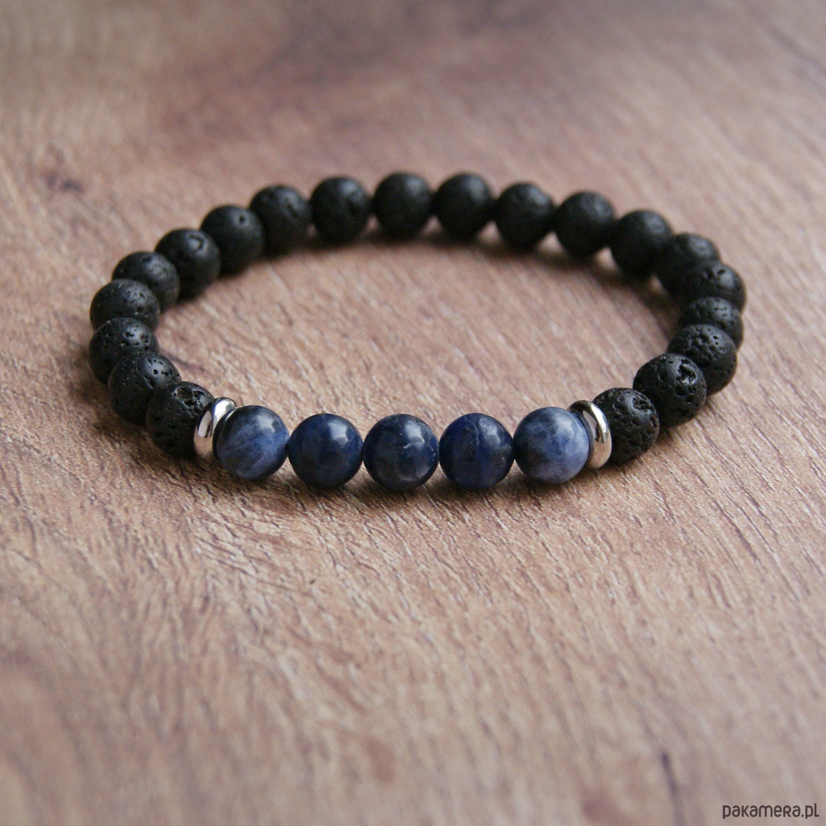 TUTAJ: niezwykle ciekawa bransoletka wykonana z kulek czarnej, porowatej lawy wulkanicznej (8mm) oraz matowego SODALITU. dodatki (pierścienie metalowe) wykonane ze STALI SZLACHETNEJ (nie uczula, nie ściera się)... ...