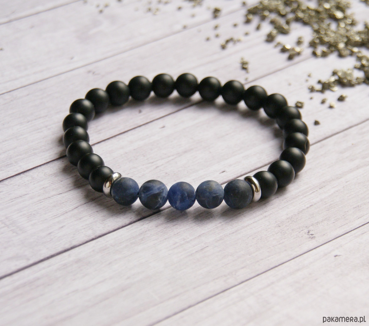 Męska bransoletka : sodalit matowy & onyks