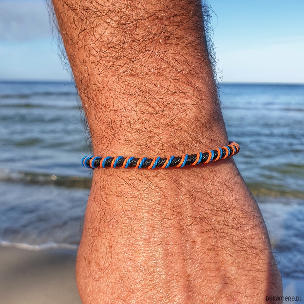 Bransoletka zawijana jest z wysokiej jakości sznurka który bardzo dobrze znosi kontakt z wodą.