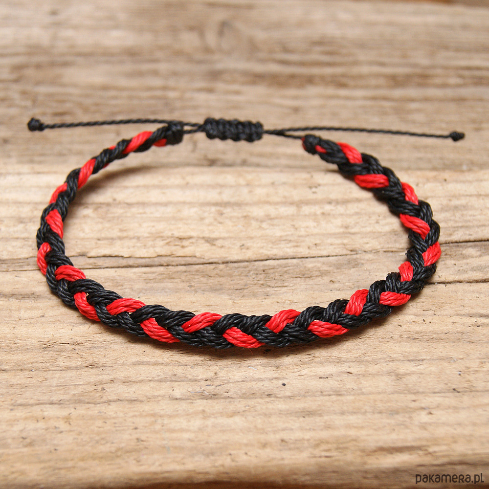 Męska bransoletka sznurkowa- warkocz 7mm - czarny z czerwonym