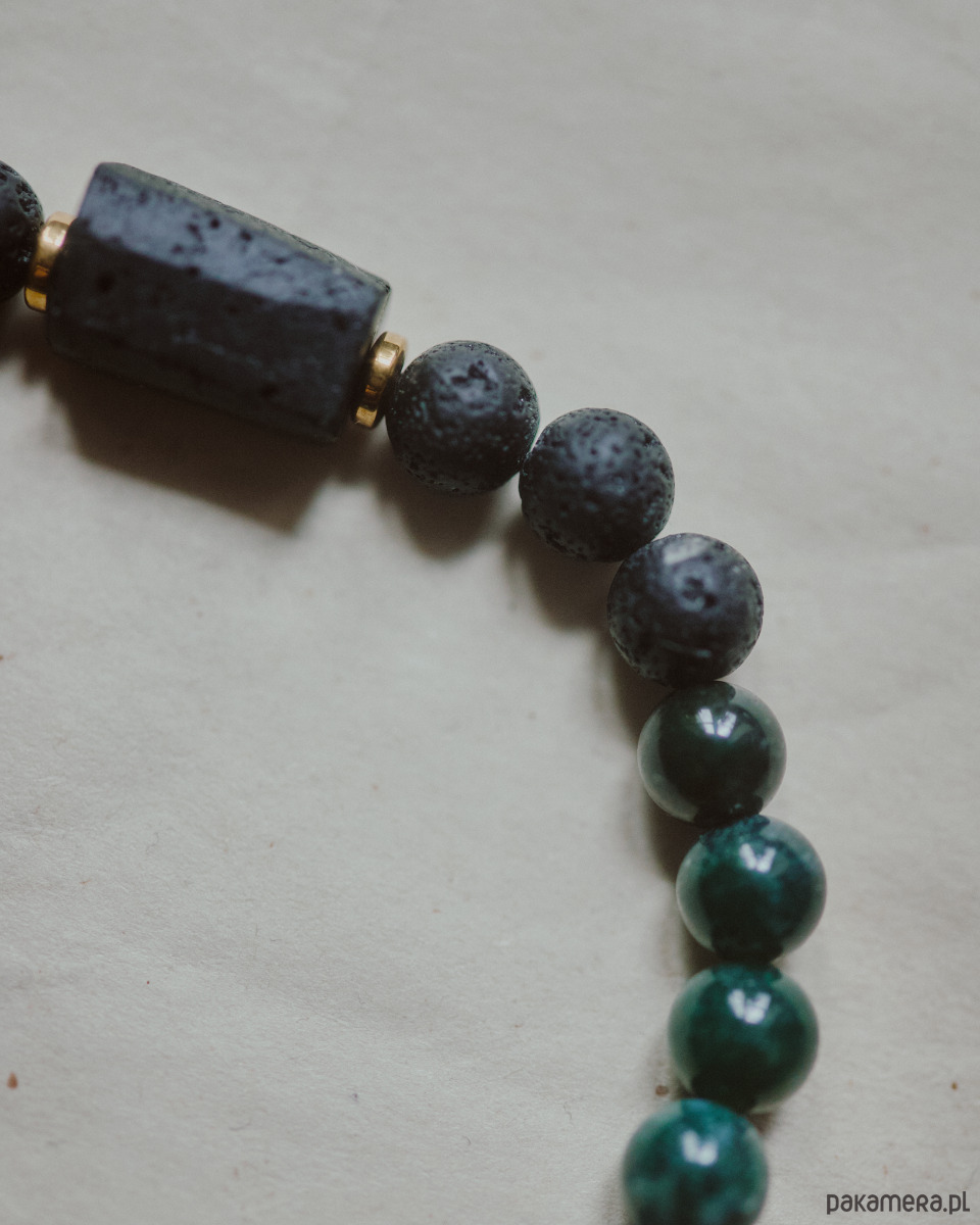 Męska bransoletka, turmalin, agat mszysty i lawa wulkaniczna