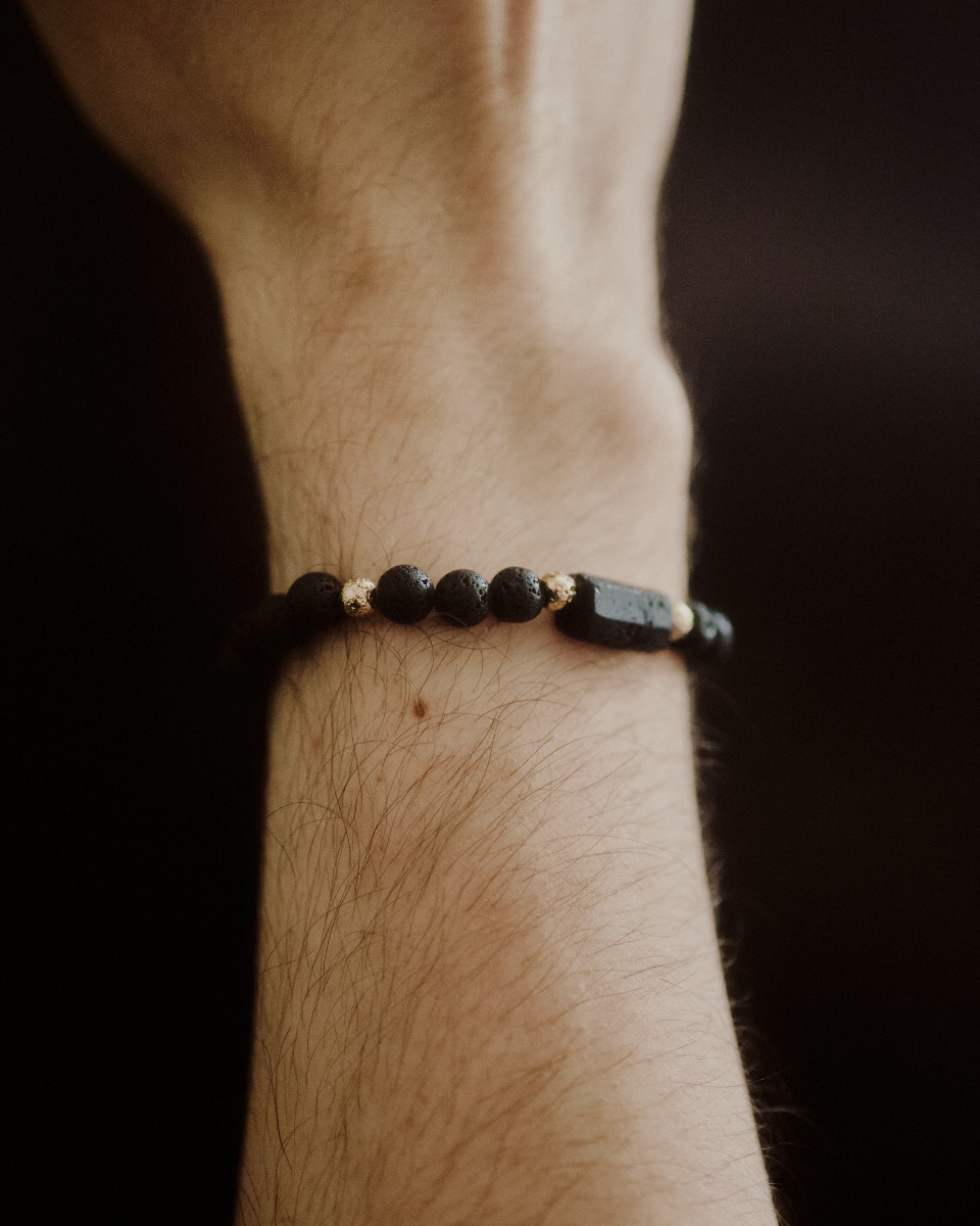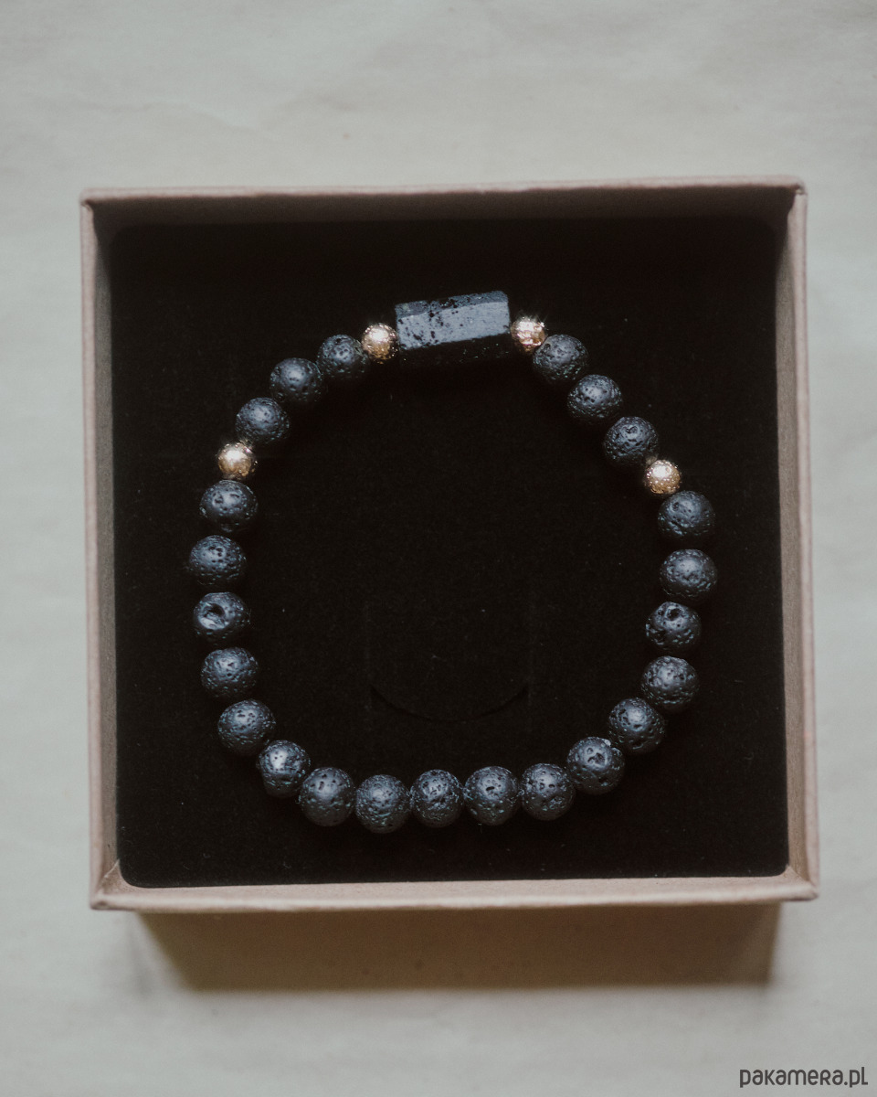 Męska bransoletka, turmalin i lawa wulkaniczna