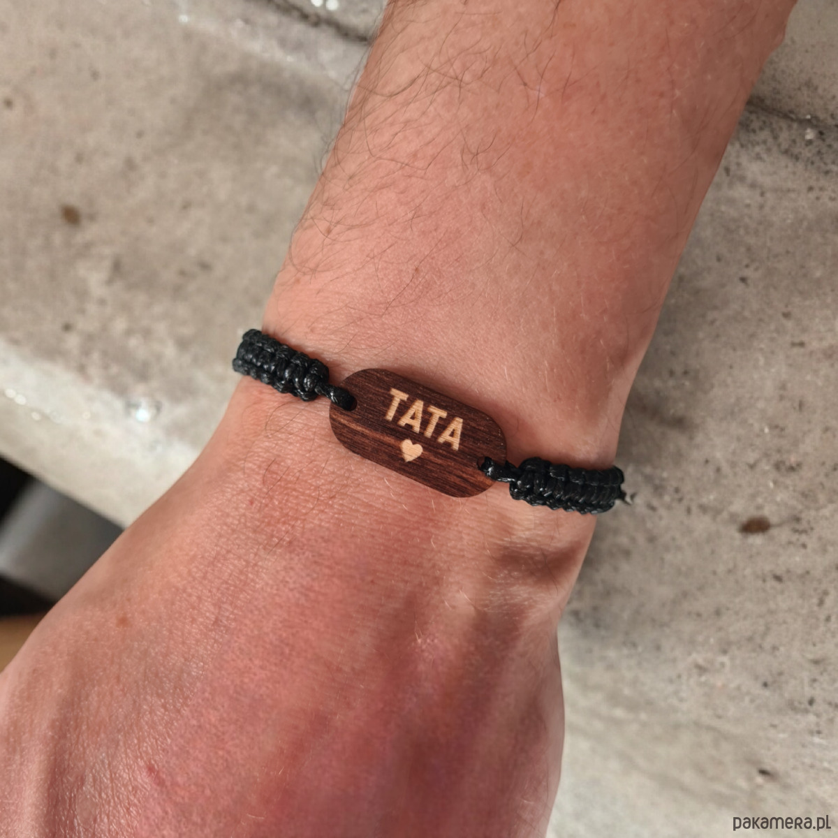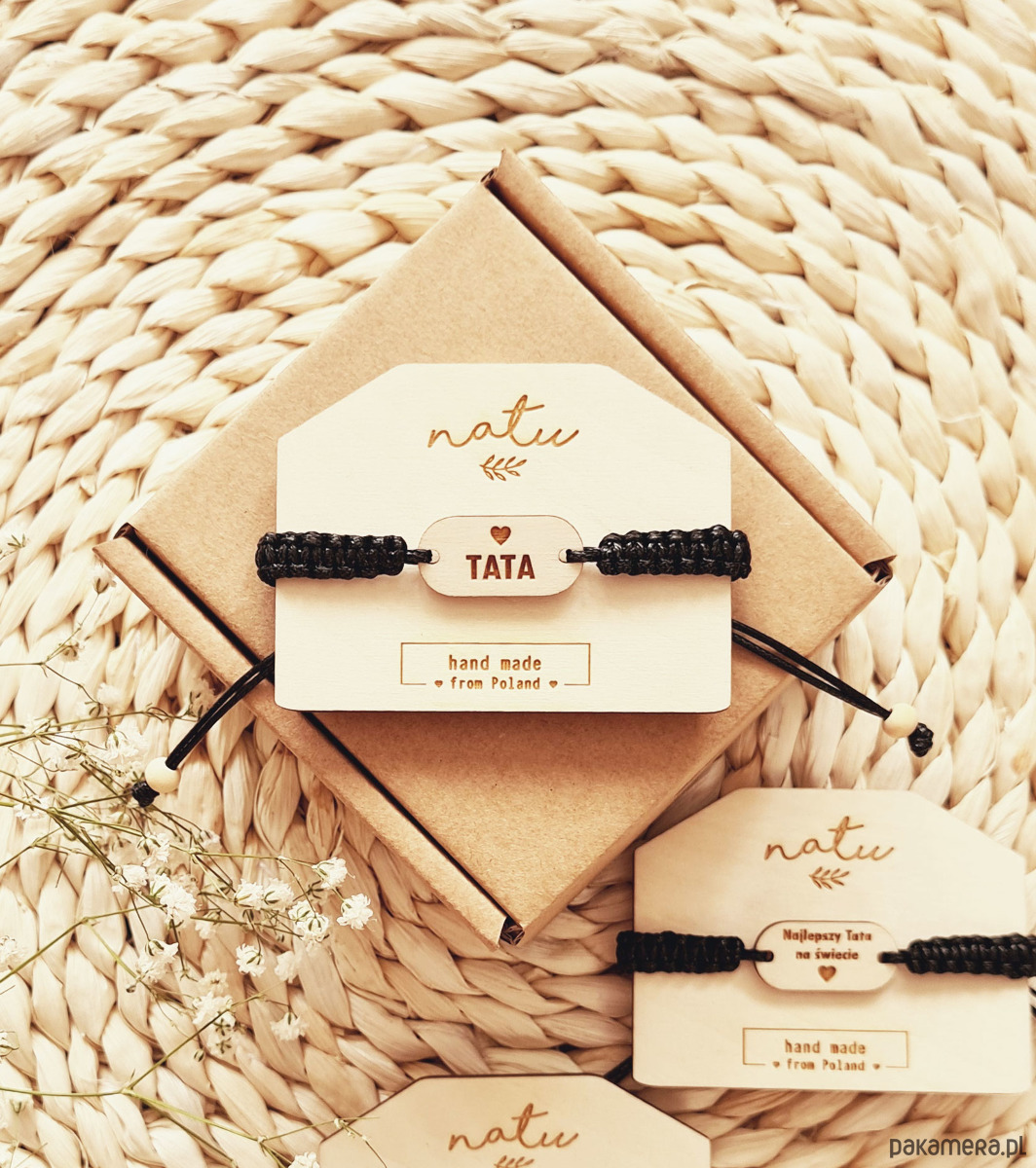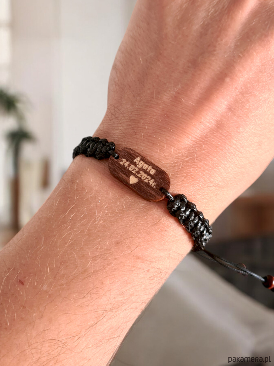 Ręcznie pleciona, męska bransoletka z grawerem.