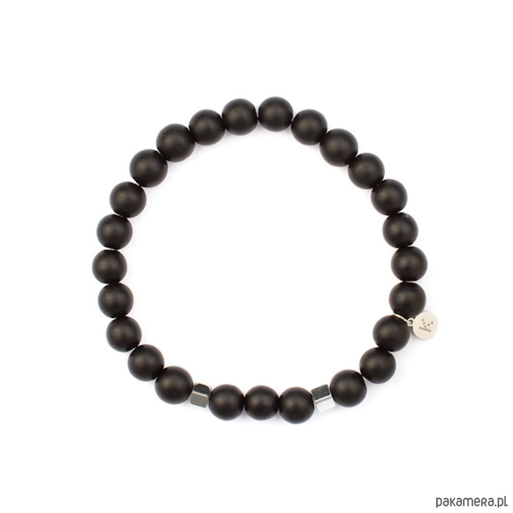 Minimalistyczna i elegancka bransoletka wykonana z naturalnych kamieni – Onyksu w matowym wykończeniu oraz subtelnych akcentów z Hematytu w formie błyszczących kostek. Jej prosty, a jednocześnie wyrazisty design sprawia, że świetnie komponuje się zarówno z codziennymi stylizacjami, jak i bardziej eleganckimi zestawieniami.Znaczenie kamieni:Onyks to kamień sukcesu. Jego energia wzmacnia wytrzymałość i odporność przy wykonywaniu trudnych, złożonych zadań.Hematyt to kamień wojowników. Silnie oczyszcza krew. Budzi radość do życia, dodaje odwagi i wiary we własne umiejętności.