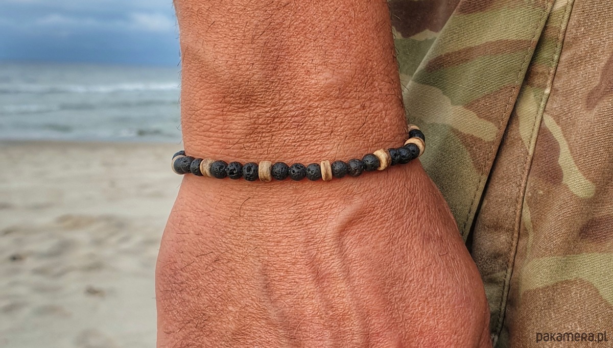Męska bransoletka z kamieniami Lawa wulkaniczna i kokos - 4mm
