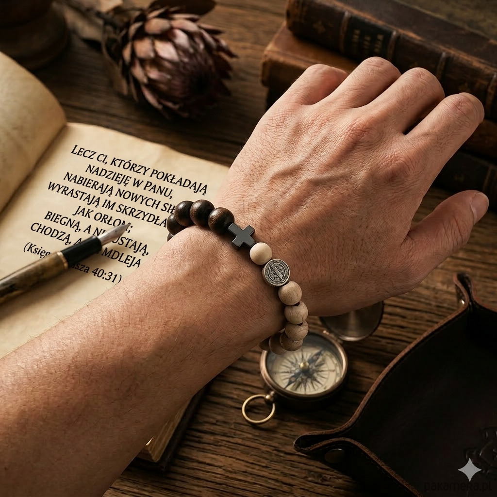 Męska bransoletka z krzyżykiem męski różaniec na rękę