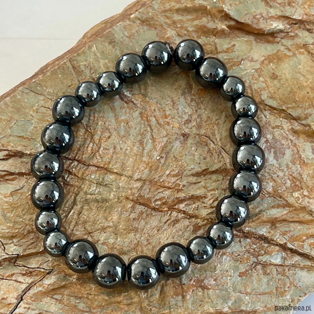 Hematyt to kamień o metalicznym, ciemnoszarym kolorze, który jest często używany do stabilizacji i uziemienia.