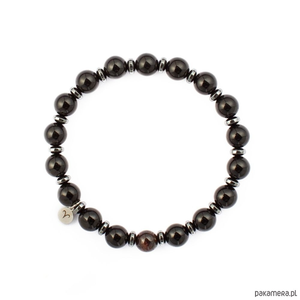 Czarny Turmalin w głębokiej czerni symbolizuje stabilność, determinację i ochronę. To kamień, który pomaga zachować spokój w trudnych chwilach i wzmacnia odwagę w podejmowaniu decyzji.Granat, umieszczony w centrum bransoletki, wnosi dynamikę i ogień. Jego ciemnoczerwona barwa odzwierciedla pasję, witalność i wewnętrzną moc, którą Baran nosi w sobie.Całość dopełniają akcenty Hematytu, które nadają eleganckiego połysku i dodatkowo wzmacniają równowagę energetyczną.