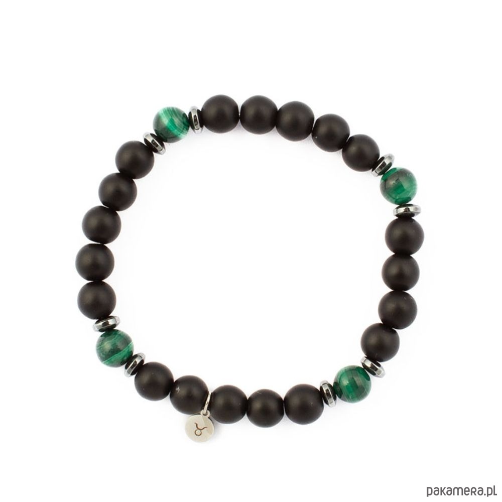 Męska bransoletka z Onyksu matowego, Malachitu i Hematytu to talizman stworzony dla mężczyzn spod znaku Byka. Połączenie głębokiej czerni i intensywnej zieleni tworzy elegancką i wyrazistą kompozycję, która podkreśla siłę, stabilność i harmonię – cechy charakterystyczne Byka.