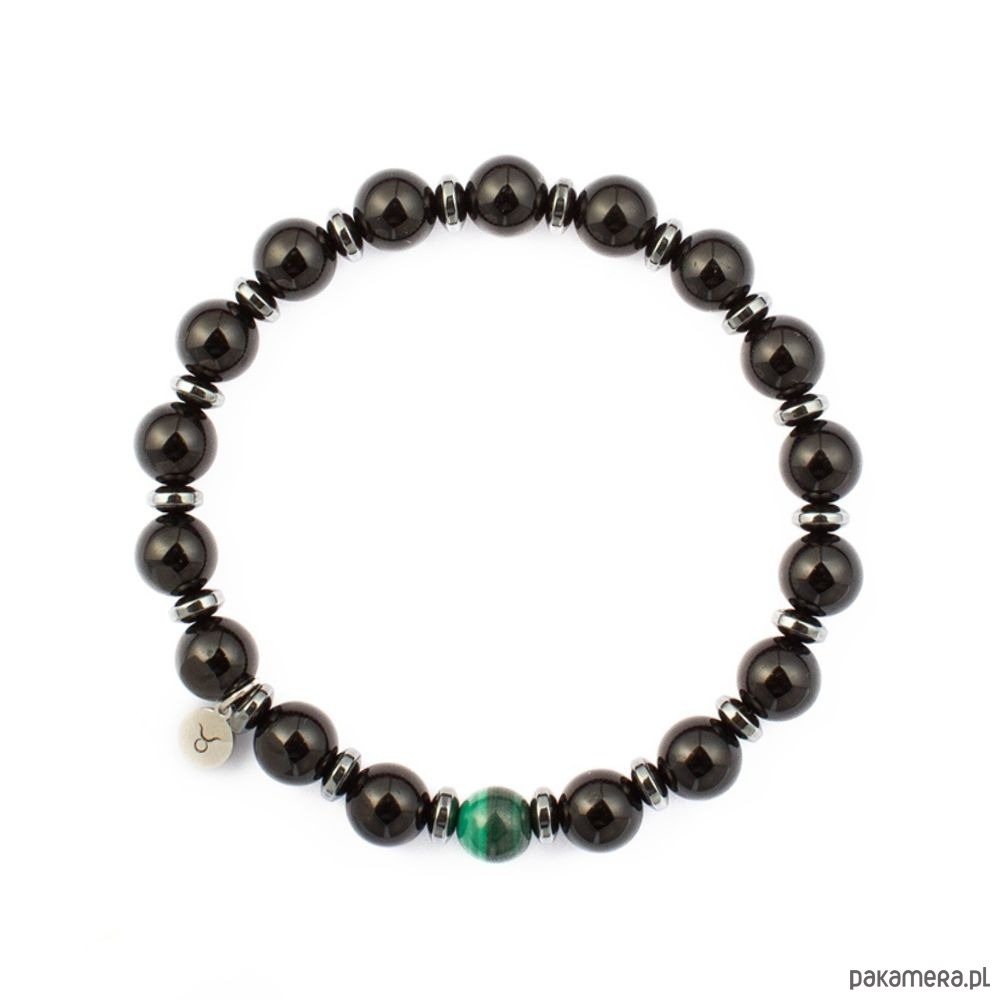 Męska bransoletka z Czarnego Turmalinu, Hematytu i centralnego Malachitu została zaprojektowana z myślą o mężczyznach spod znaku Byka. Jej elegancka forma i kontrast między głęboką czernią a intensywną zielenią symbolizują równowagę pomiędzy siłą a harmonią.