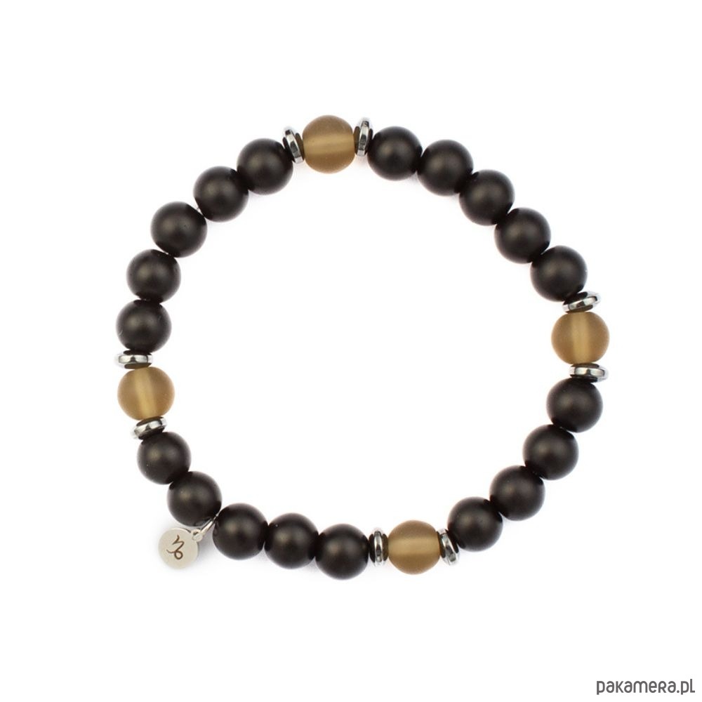 W jej strukturze spotykają się trzy kamienie o wyjątkowej symbolice. Onyks to kamień odwagi i pewności siebie – chroni przed negatywną energią, dodaje siły w pokonywaniu przeszkód i wzmacnia niezłomność w działaniu. Hematyt jest minerałem równowagi i koncentracji – ułatwia podejmowanie racjonalnych decyzji, sprzyja dyscyplinie i podkreśla stabilność charakteru Koziorożca. Kwarc Dymny działa jak kamień spokoju – redukuje stres, łagodzi napięcia i pozwala zachować jasność myśli w obliczu trudnych sytuacji.