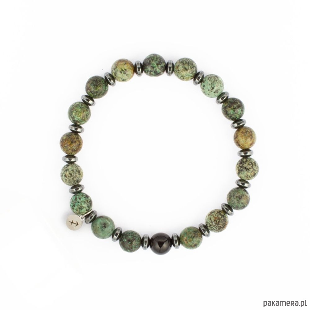 Hematyt to kamień wojowników. Silnie oczyszcza krew. Budzi radość do życia, dodaje odwagi i wiary we własne umiejętności.Turkus afrykański to kamień podróżników. Pełen energii talizman, wzmacniający odwagę i intuicję podróżujących oraz sprzyjający nowym przyjaźniom.Turmalin czarny to kamień ochrony. Jest wyjątkowym kamieniem, który zapewnia ochronę przed tzw. złym okiem, czyli zazdrością, szkodliwymi intencjami oraz innymi rodzajami negatywnych wpływów, takimi jak obawy, strach i złość.