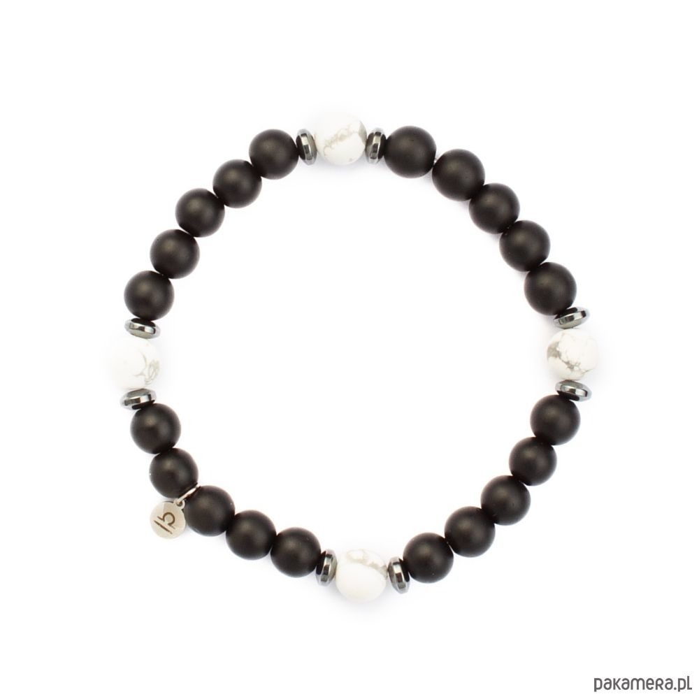 Znaczenie kamieni: Hematyt to kamień wojowników. Silnie oczyszcza krew. Budzi radość do życia, dodaje odwagi i wiary we własne umiejętności.Onyks to kamień sukcesu. Jego energia wzmacnia wytrzymałość i odporność przy wykonywaniu trudnych, złożonych zadań.Howlit to kamień mądrości. Doskonale wycisza, koi i uczy cierpliwości. Uspokaja nasz umysł i pomaga podejmować roztropne decyzje.