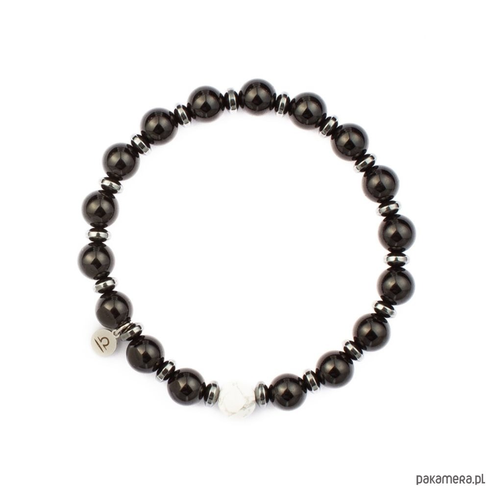 Znaczenie kamieni: Hematyt to kamień wojowników. Silnie oczyszcza krew. Budzi radość do życia, dodaje odwagi i wiary we własne umiejętności.Turmalin czarny to kamień ochrony. Jest wyjątkowym kamieniem, który zapewnia ochronę przed tzw. złym okiem, czyli zazdrością, szkodliwymi intencjami oraz innymi rodzajami negatywnych wpływów, takimi jak obawy, strach i złość.Howlit to kamień mądrości. Doskonale wycisza, koi i uczy cierpliwości. Uspokaja nasz umysł i pomaga podejmować roztropne decyzje.