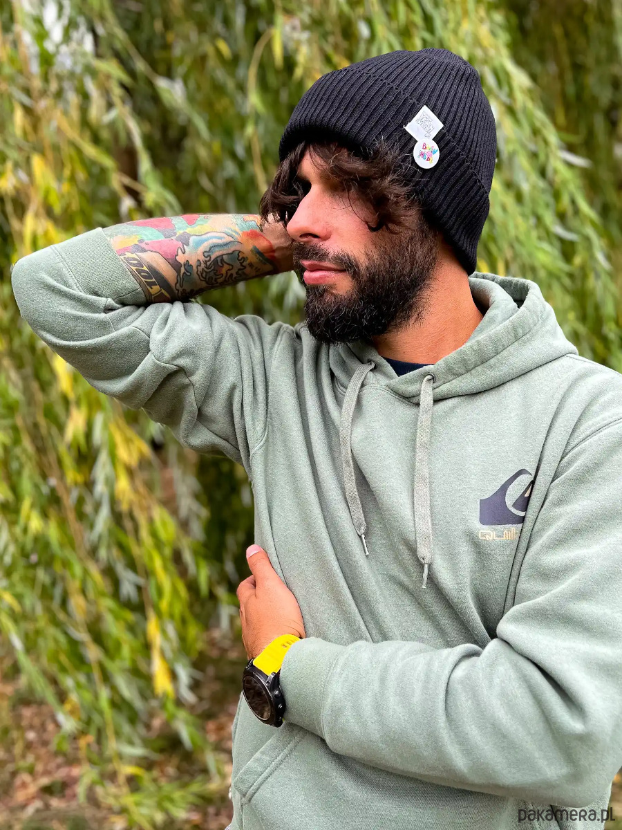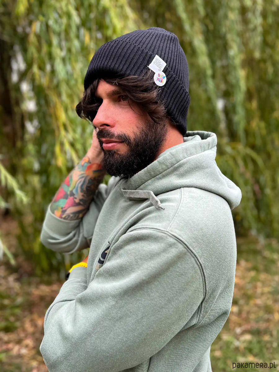Miękka jak kocyk u babci, oddychająca jak Twoje ulubione sneakersy — beanie z bawełny to klasyk z twistem. A nawet z dwoma twistami, bo to model 2w1: możesz ją nosić podwiniętą (czapka beanie) albo rozwiniętą (smerfetka, luźna czapka). Po lewej stronie haftowane, dwustronne, kolorowe logo, więc każdy wie, że masz brain inside. A tuż obok – stajlowy pin, który dodaje charakteru i błysku jak wisienka na torcie (tylko bardziej streetwear). Idealna na chłodne poranki, złote zachody słońca i dni, gdy fryzura mówi „nie dzisiaj”. Elastyczna, lekka i niegryząca – nosisz i zapominasz, że ją masz (ale inni nie zapomną).