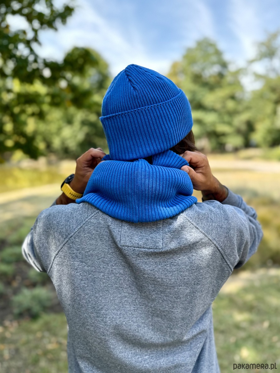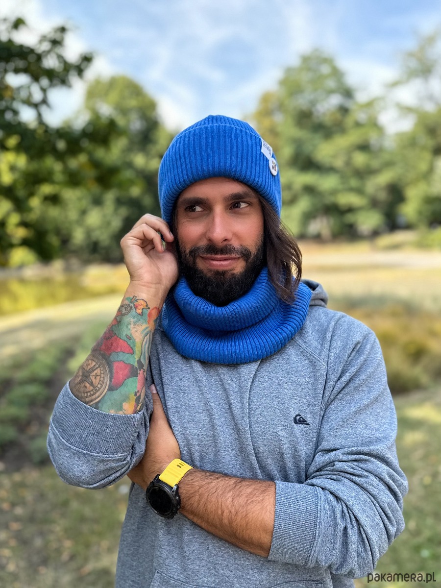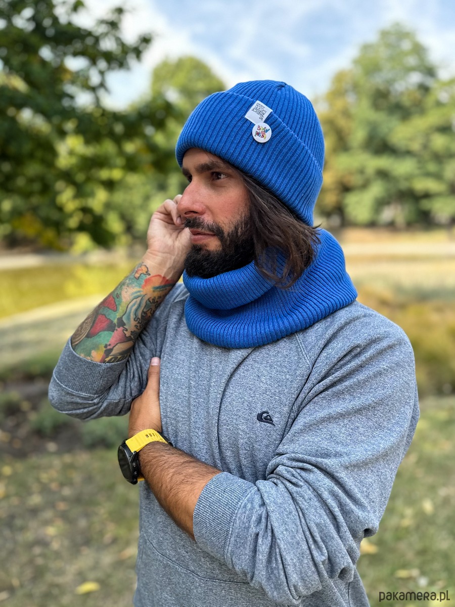Męska czapka beanie z bawełny logo kolorowe Niebieski Kobalt