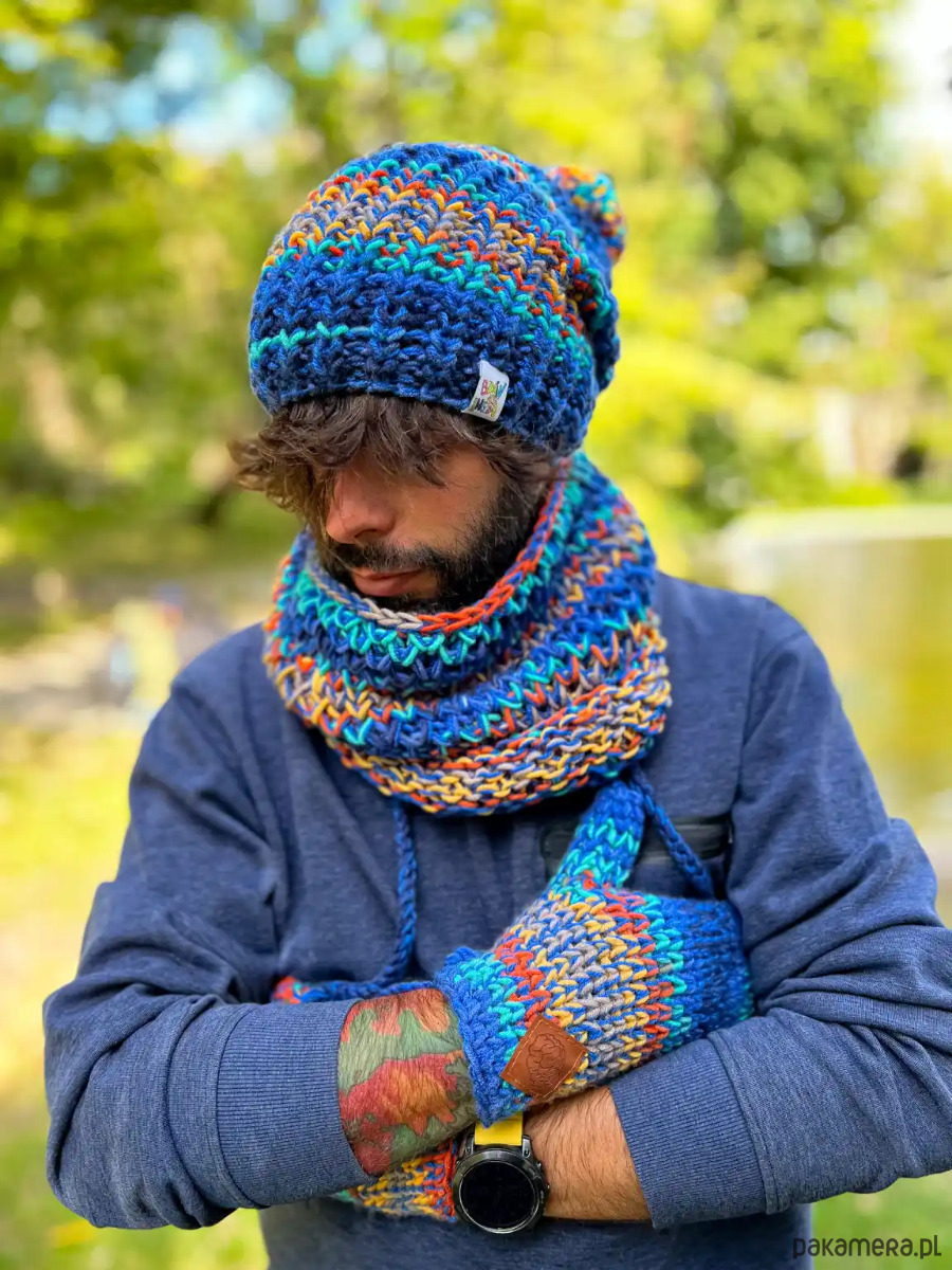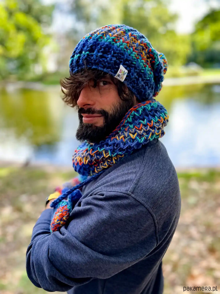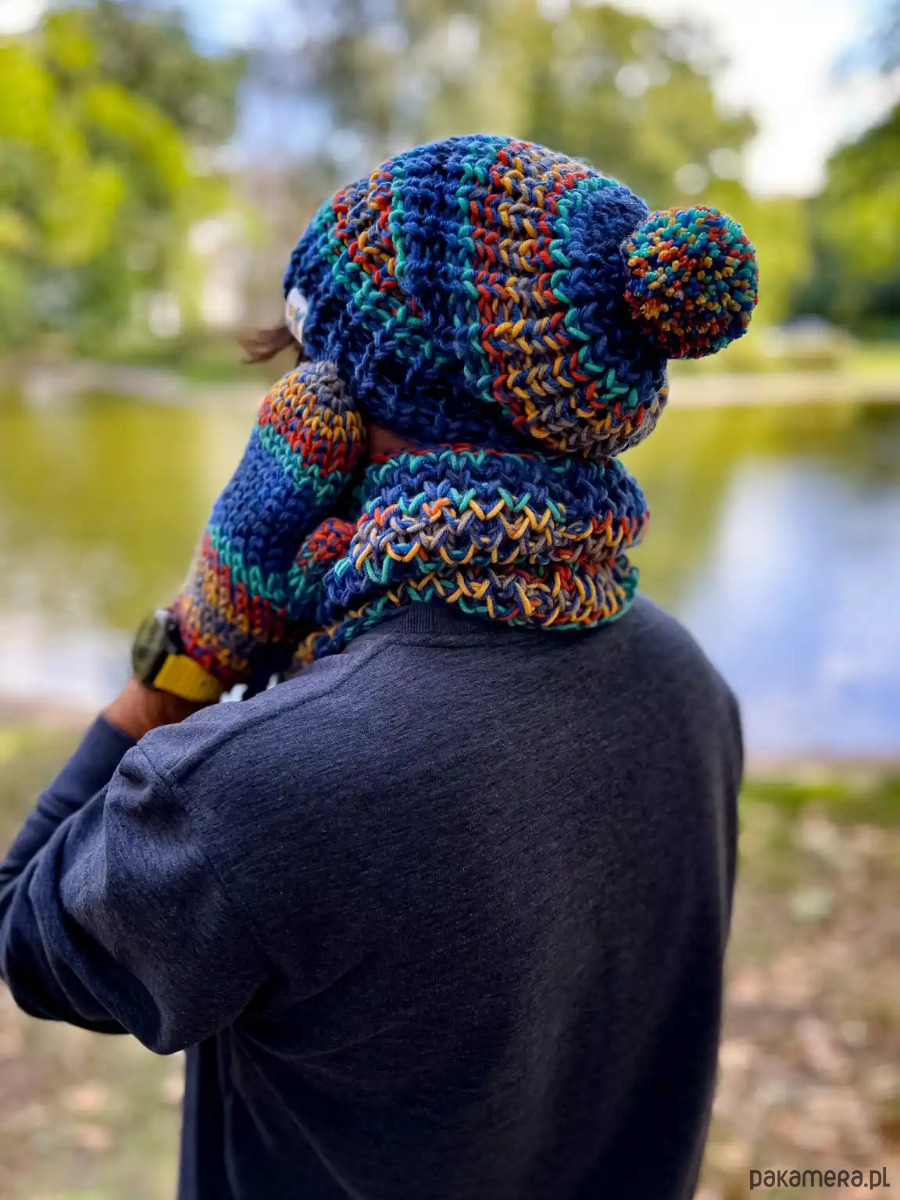 Ręcznie dziergana przez poznańskie Seniorki z mieszanki 50% merino i 50% akrylu, w środku podszyta polarem, otula głowę ciepłem jak ulubiony koc w grudniowy wieczór. Zwisający fason dodaje jej luzu, a pompon robi robotę – trochę żartu, trochę stylu.