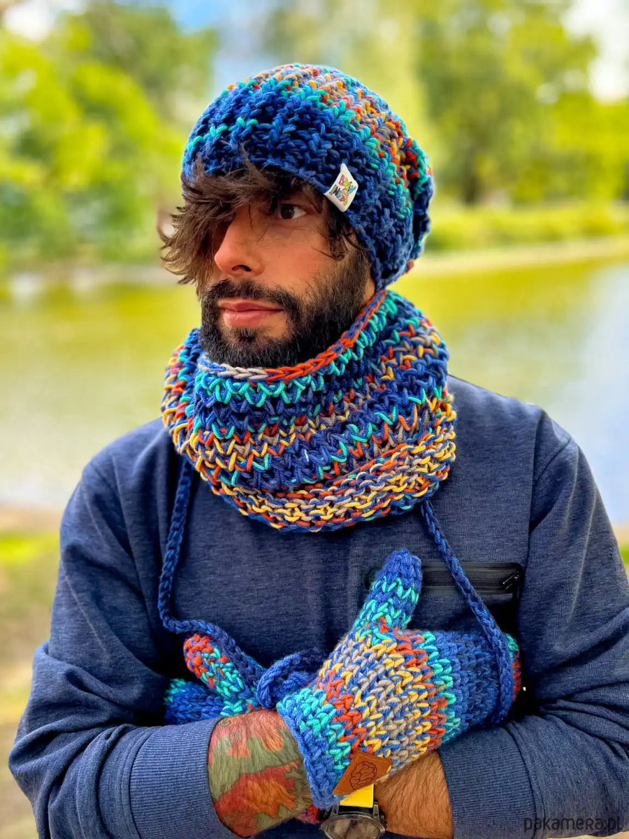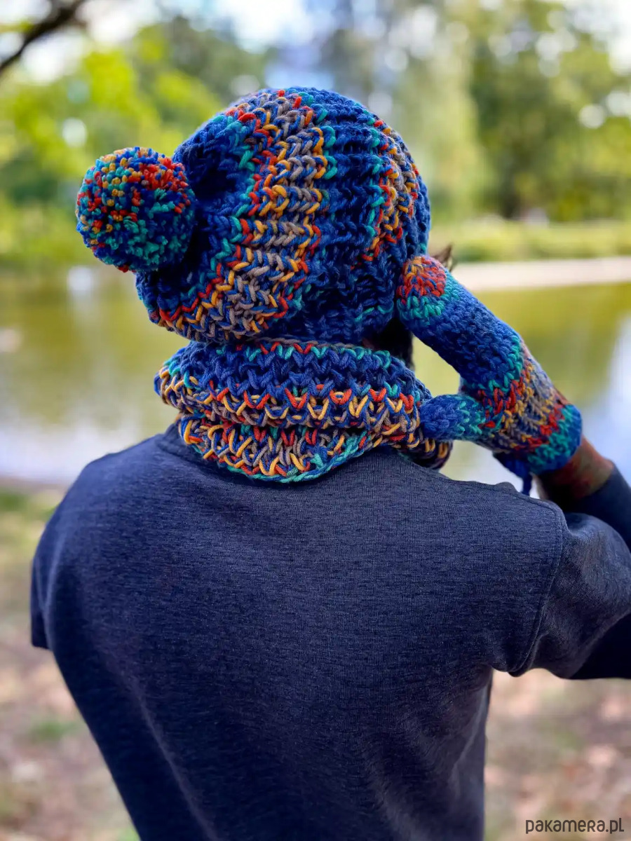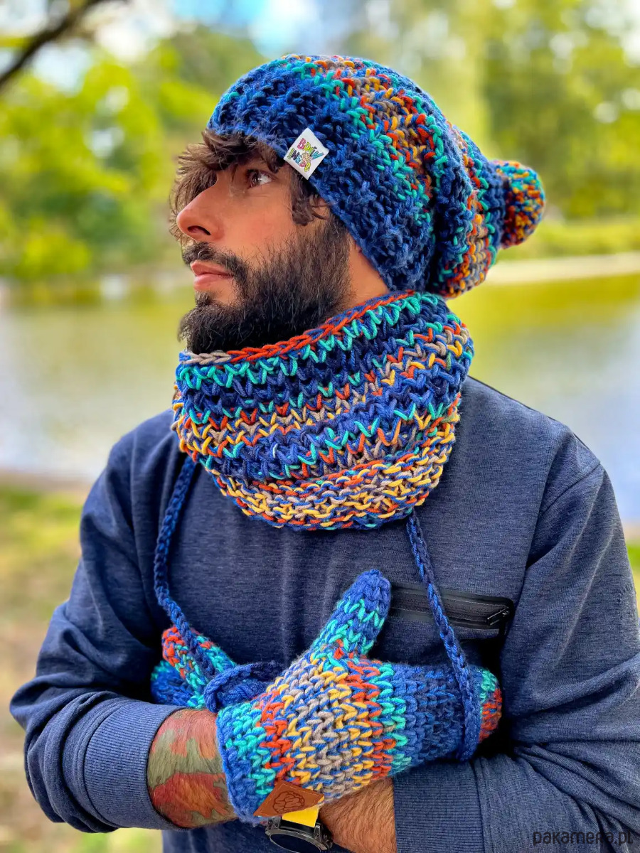 Ręcznie dziergana przez poznańskie Seniorki z mieszanki 50% merino i 50% akrylu, w środku podszyta polarem, otula głowę ciepłem jak ulubiony koc w grudniowy wieczór. Zwisający fason dodaje jej luzu, a pompon robi robotę – trochę żartu, trochę stylu.