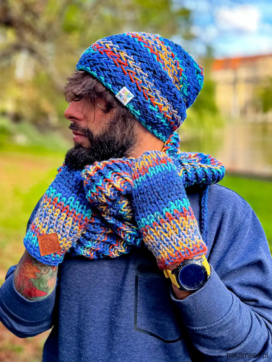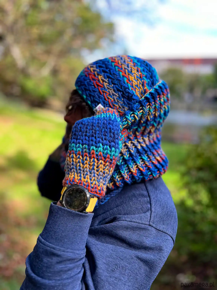 Ręcznie robiona przez poznańskie Seniorki z mieszanki 50% merino i 50% akrylu, jest miękka, ciepła i oddychająca – bez pompona, bez polaru, za to z charakterem. Luźna i lekko zwisająca, ma ten nonszalancki vibe, który sprawia, że wygląda dobrze zarówno na spacerze po mieście, jak i podczas weekendowej wyprawy za miasto.